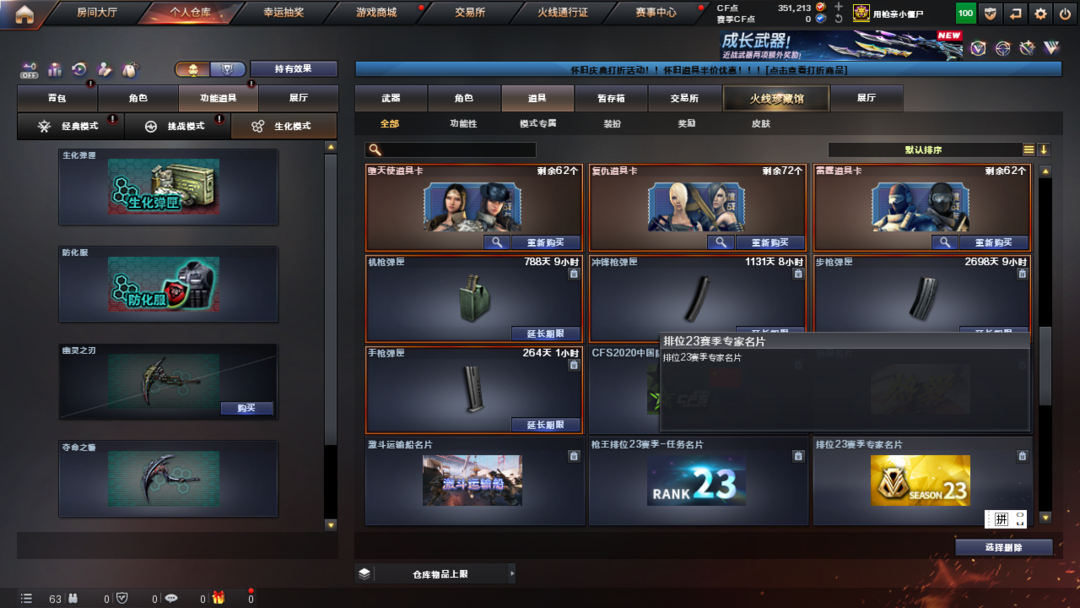 装备描述:描述的东西都全!限时白菜价出租!!!账号可以称为生化模式天花板,排位好号。永久会员,弹夹齐全❤️传说圣灵❤️毁灭大炮❤️巴雷特朱雀❤️m4a1死神❤️QBZO3王者蔷薇❤️ak47火麒麟❤️AWM天龙❤️3屠龙❤️龙啸烈火龙威❤️沙鹰天神❤️炫金雷神❤️黄金猫猫手套白鲨❤️迷你宝贝❤️白虎➕音效卡➕掌上武器雷神-妍等…… 祝大家玩得开心,请绿色游戏!开挂追责! 喜欢可以好评、收藏,以后还会维护和打造账号。以求给大家带来更极致的游戏体验! 弹夹齐全。若少弹夹,会及时处理。(弹夹已补) 会员是永久的,若掉是系统 bug,重启即可。 生化背包变更,每天可重置一个属性。