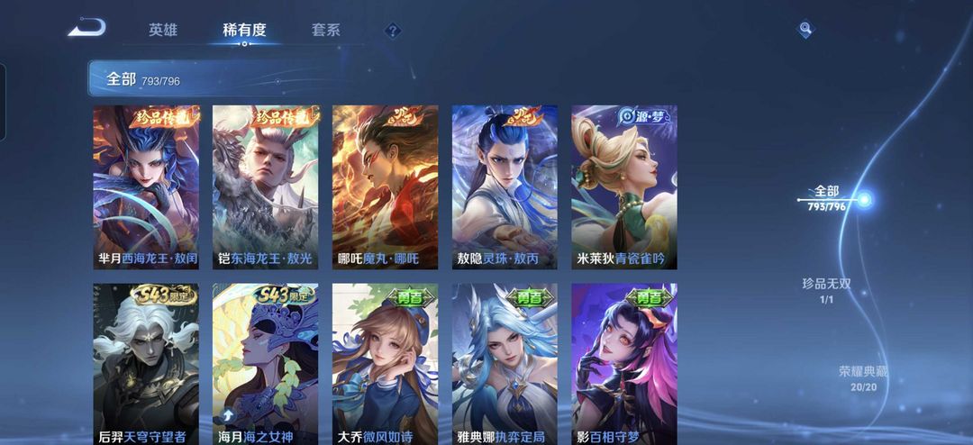 凯东海龙王芈月西海龙王♥魔丸哪吒灵珠敖隐794满皮肤♥李信无双安琪拉典藏♥貂蝉馥梦繁华♥满典藏满无双