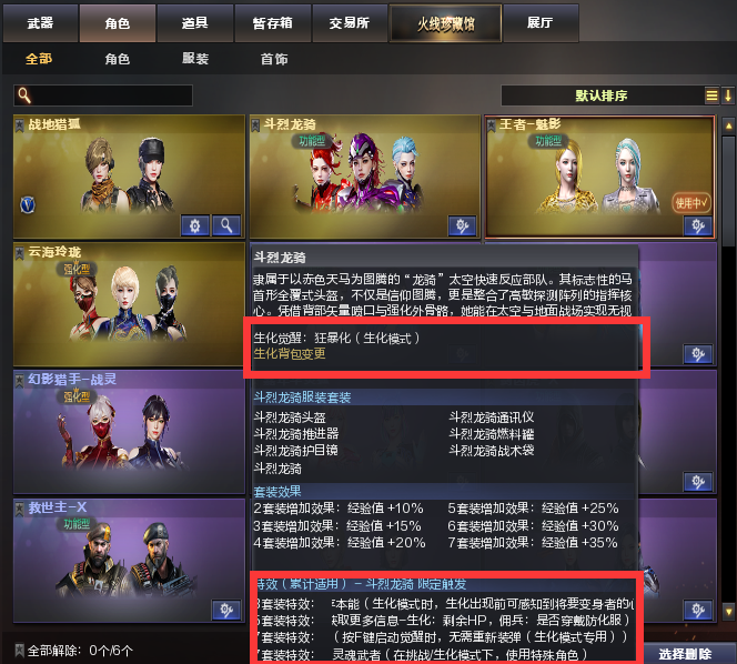 租6送1角色名:生化号