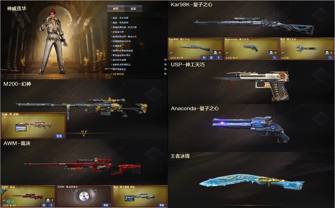 神威莲华3防+炼狱蝴蝶1烈♉幻神权+裁决白虎三件套✅98量子套+幻影QBZ天袭朱雀♉USP神工左轮