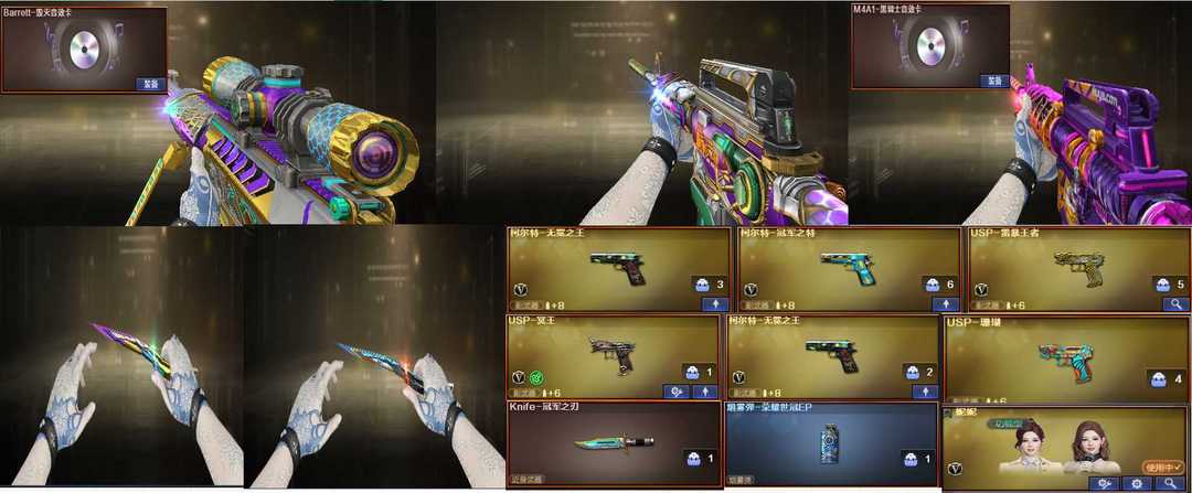 开挂报案❤️幻神极品5皮EP★KZ➕音效卡❤️裁决音效卡带皮➕g36c➕加利尔➕炽芒蝶刃➕满配手枪