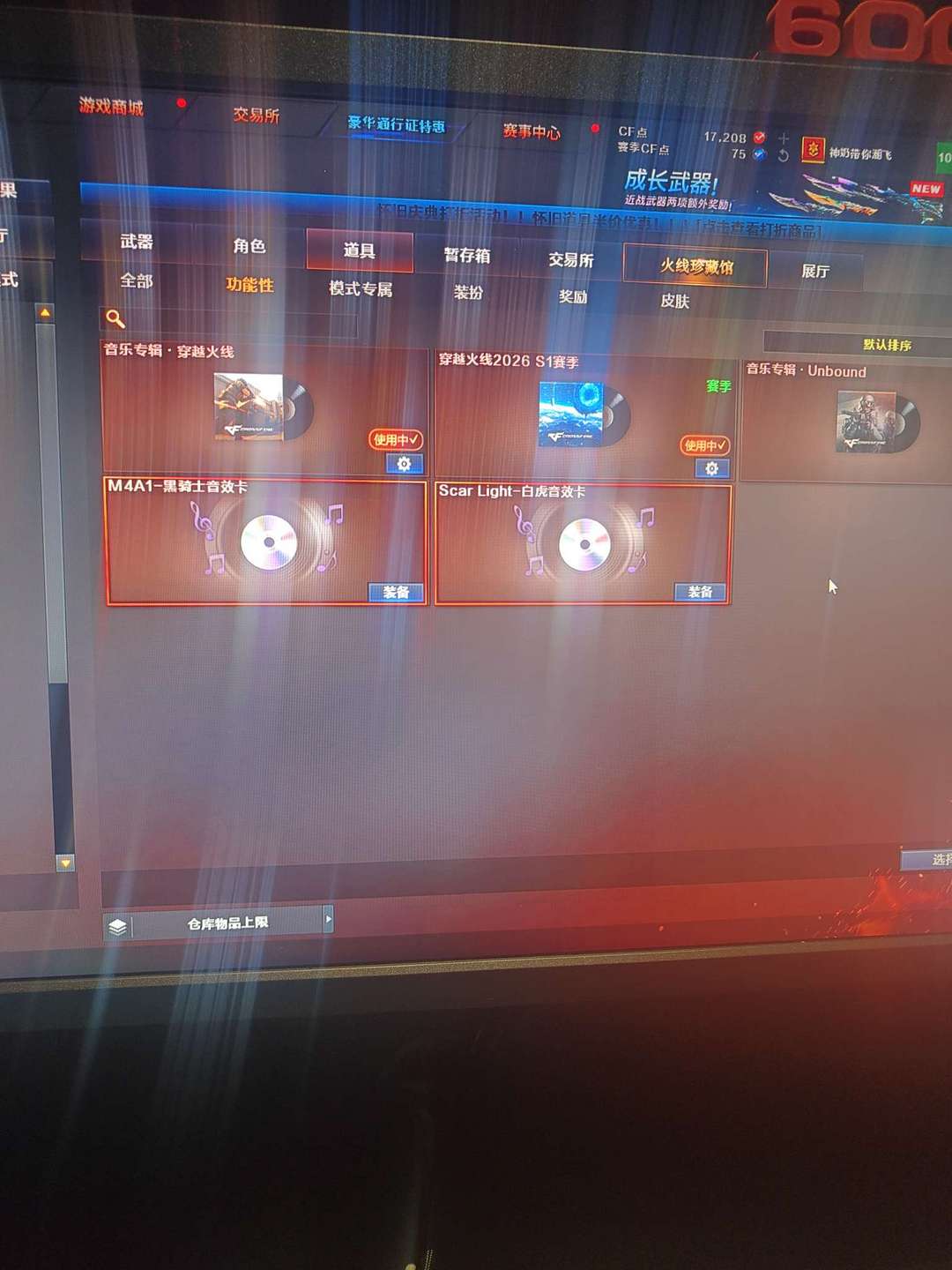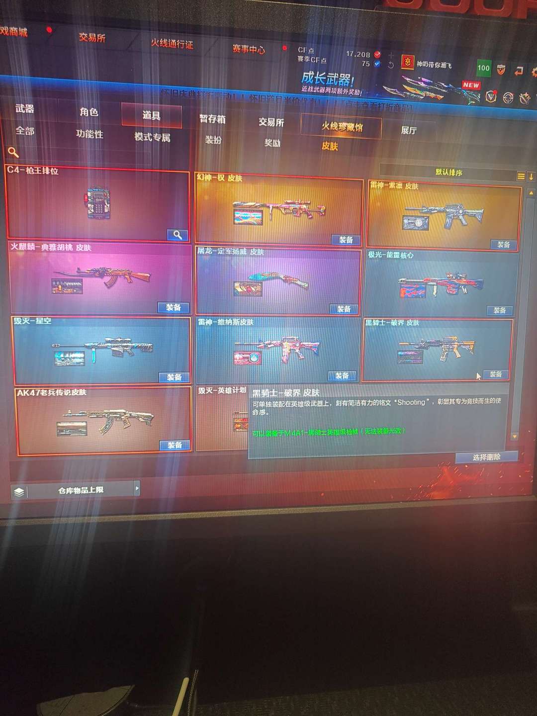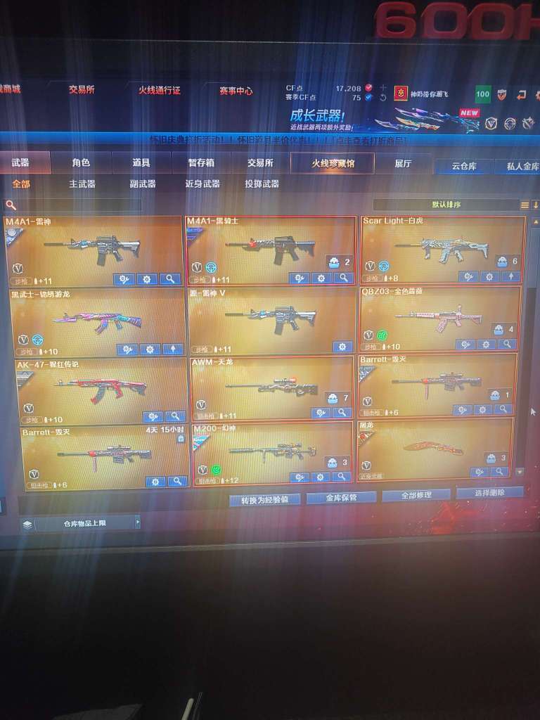 装备描述:各种皮肤,还有道具 幻神 白虎和音效卡 堕天神全套