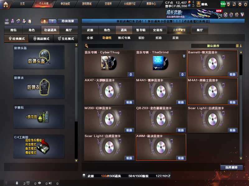 装备描述:幻神三件套白虎三件套QBZ三件套裁决三件套,2USP雷暴3COP堕天使,6烈龙加斯泰尔蝴蝶6盘龙8音效卡。