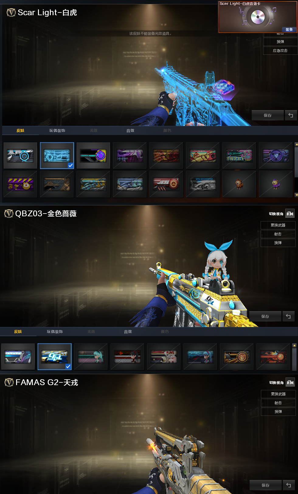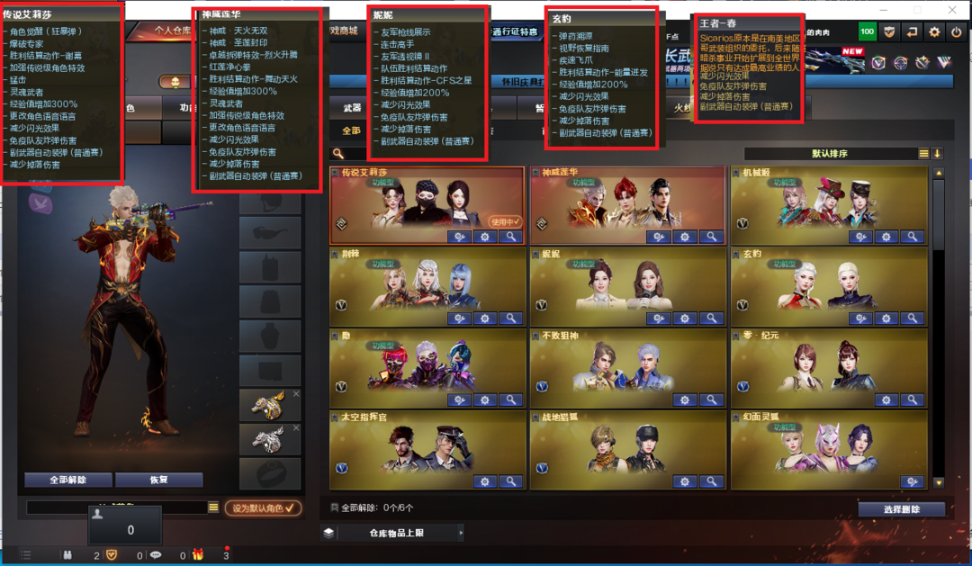 装备描述:排位:可以、、、、、、、、、、、、、爆破四防:6皮幻神音效(EP荣耀、权、宠儿、冠军之幻、电竞之星、降龙皮肤)、王者星神、、、、、2个USP冥王、COP堕天神、COP幻灵、2个柯尔特-无冕之王、冠军之特、USP雷暴王者、COP王者堕天神、EP荣耀柯尔特、、、G36幻影、神威天绫、传说圣谕、白虎(光海夜岚)、FAMAS G2-天戎、加利尔ACE-天袭、白虎、QBZ冠军之薇、7把炽芒蝶刃、、、幻神音效、裁决音效、白虎音效、幻影音效、、、2套雷暴、5套幻灵、7套玄豹、1套雷暴王者、、、爆破四防(传说艾莉莎、神威莲华、妮妮、玄豹、王者春)