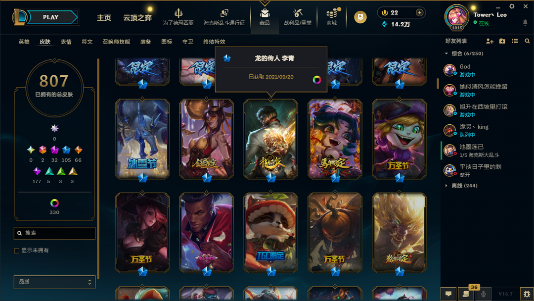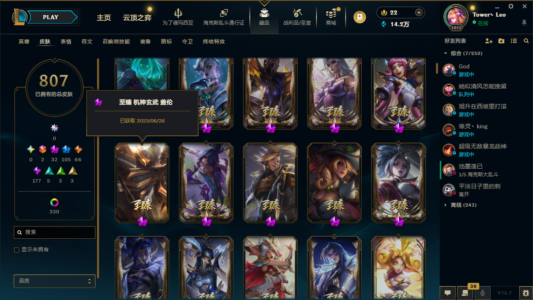 扭曲4000皮⚡67神话⚡龙虾至高天全套⚡神话艾希心之钢永恩金克斯卡莎⚡至臻机神玄武盖伦⚡云顶3神话