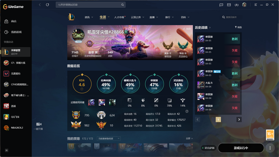 游戏区服:英雄联盟-联盟二区-诺克萨斯