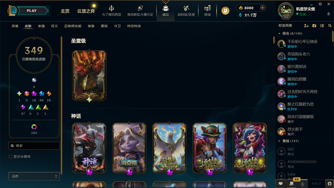 全英雄703级349皮肤铂金号便宜出租