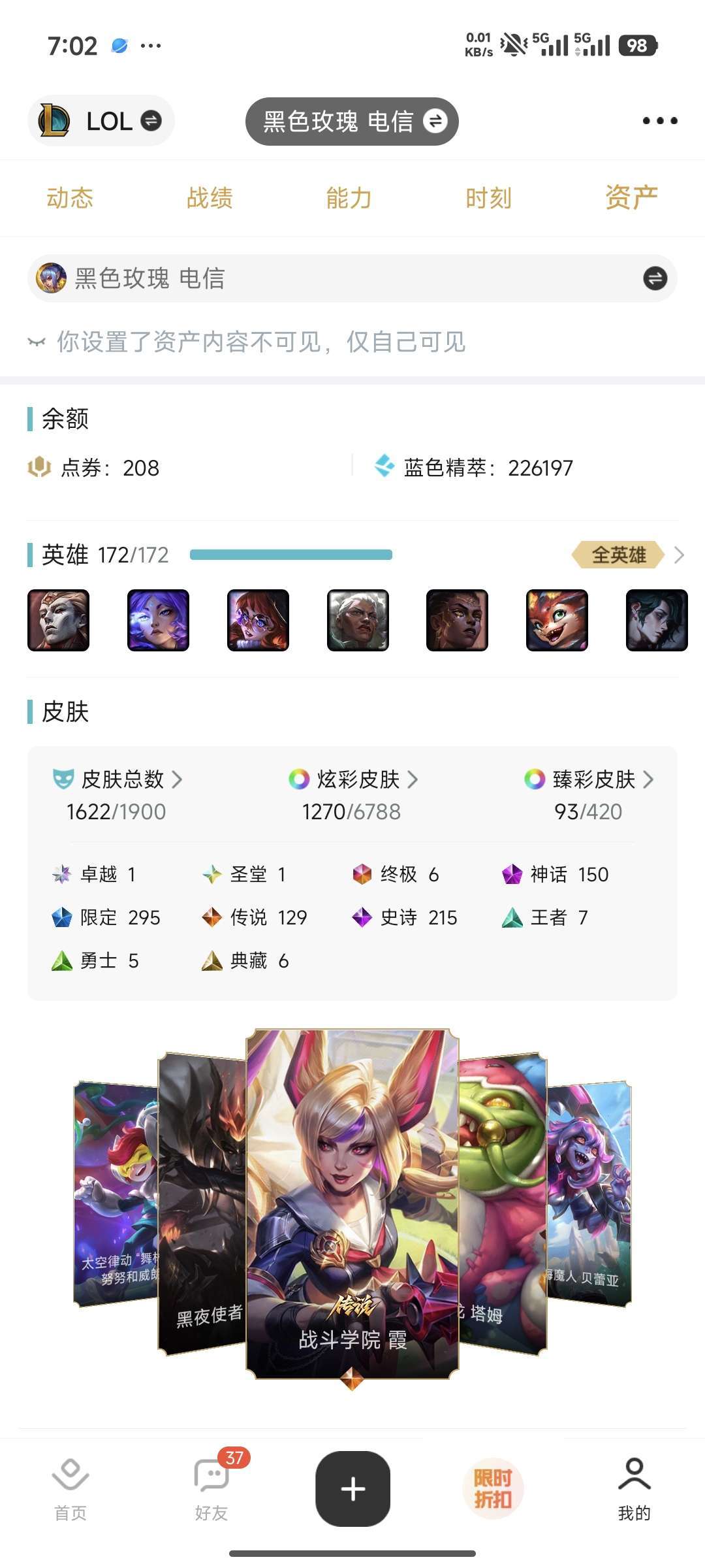1600皮肤,1圣堂,148神话,292限定,龙瞎啥的都有,经常更新新皮肤
