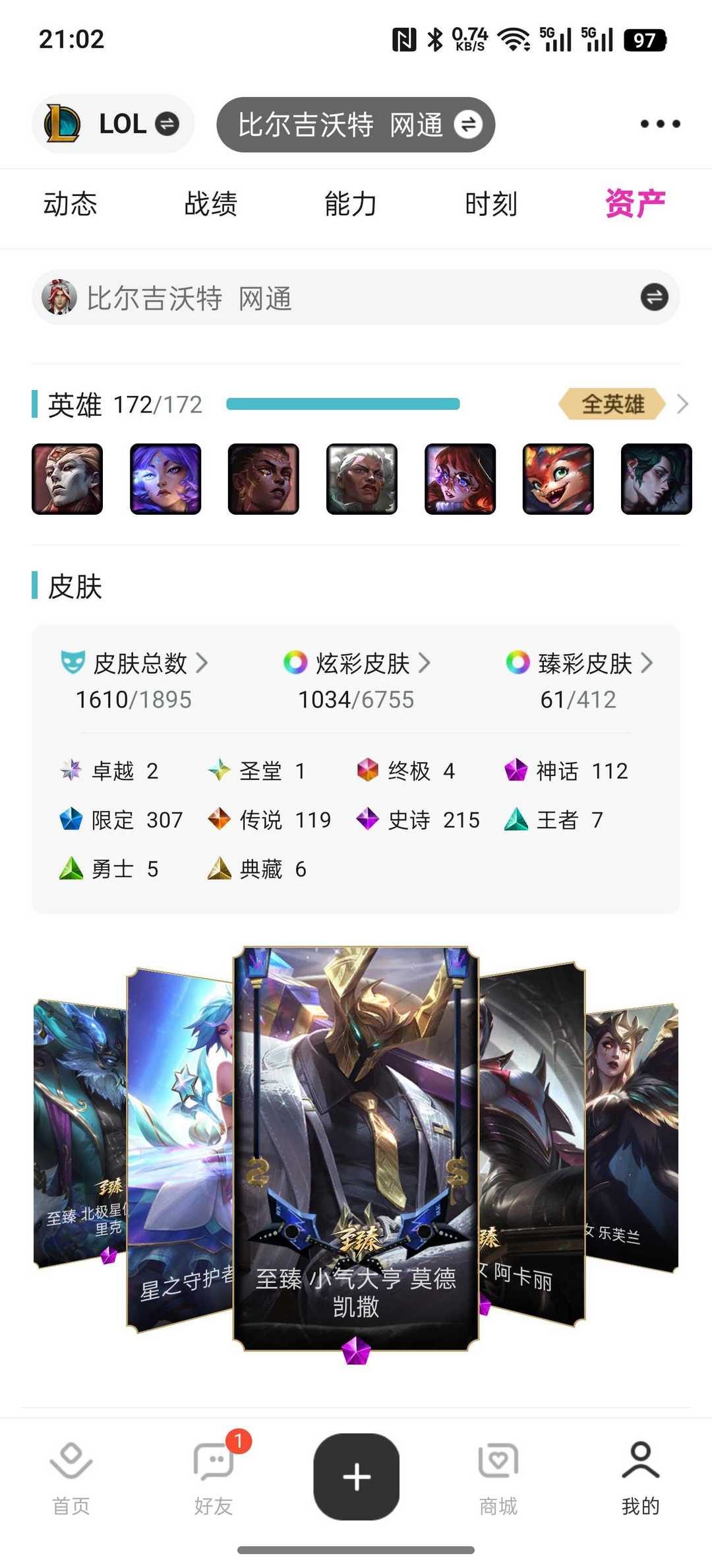 比尔,圣堂佛耶戈❤️1610原皮❤️神话龙王永恩❤️名人堂阿狸卡莎❤️全年限❤️冰桶❤️黄金虐菜号