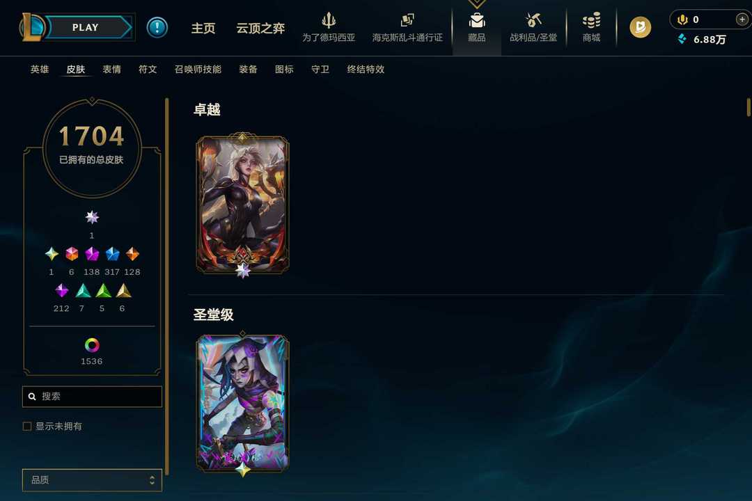 1704原皮+1536炫⚡Uzi卡莎⚡圣堂金克丝⚡神话亚索白银天使⚡️全至臻斗魂弗耶戈北极星神套
