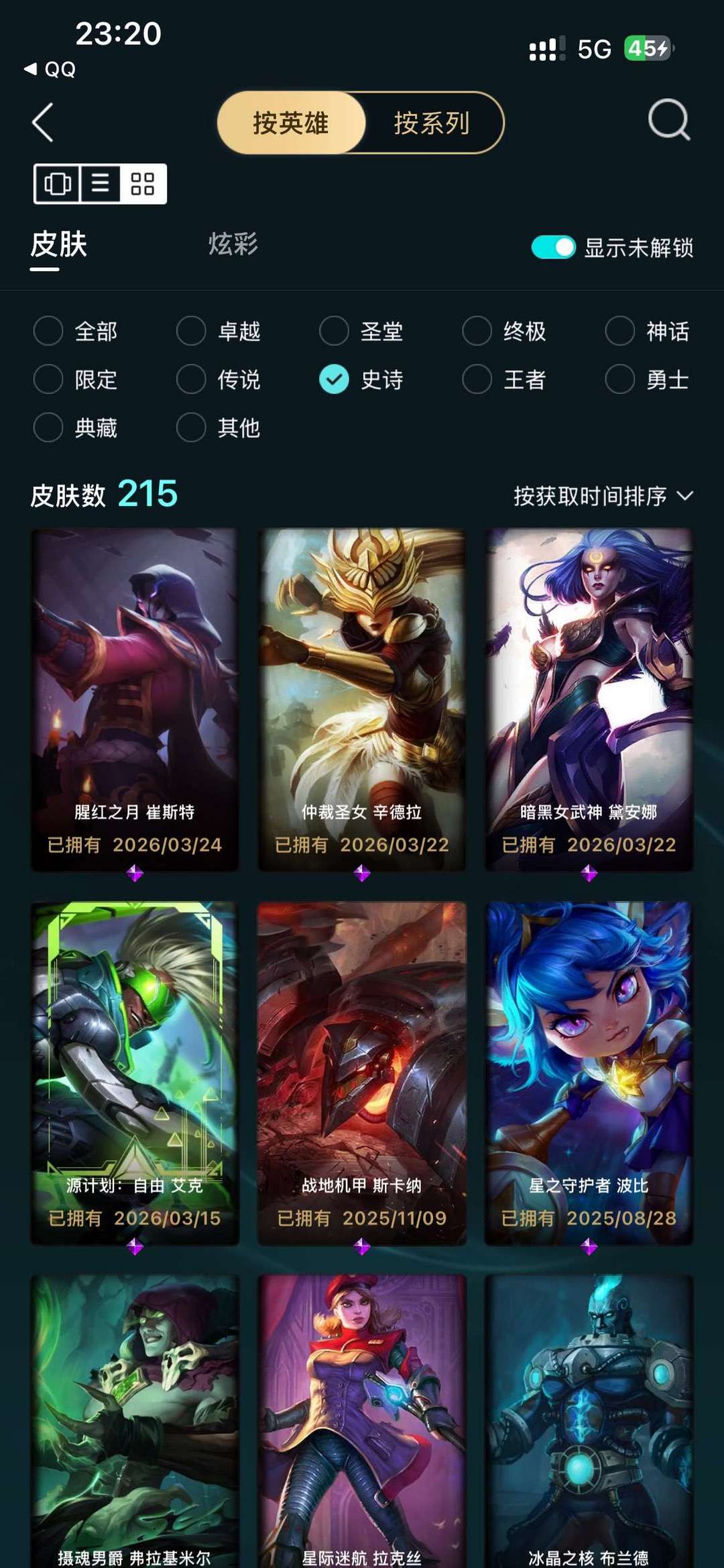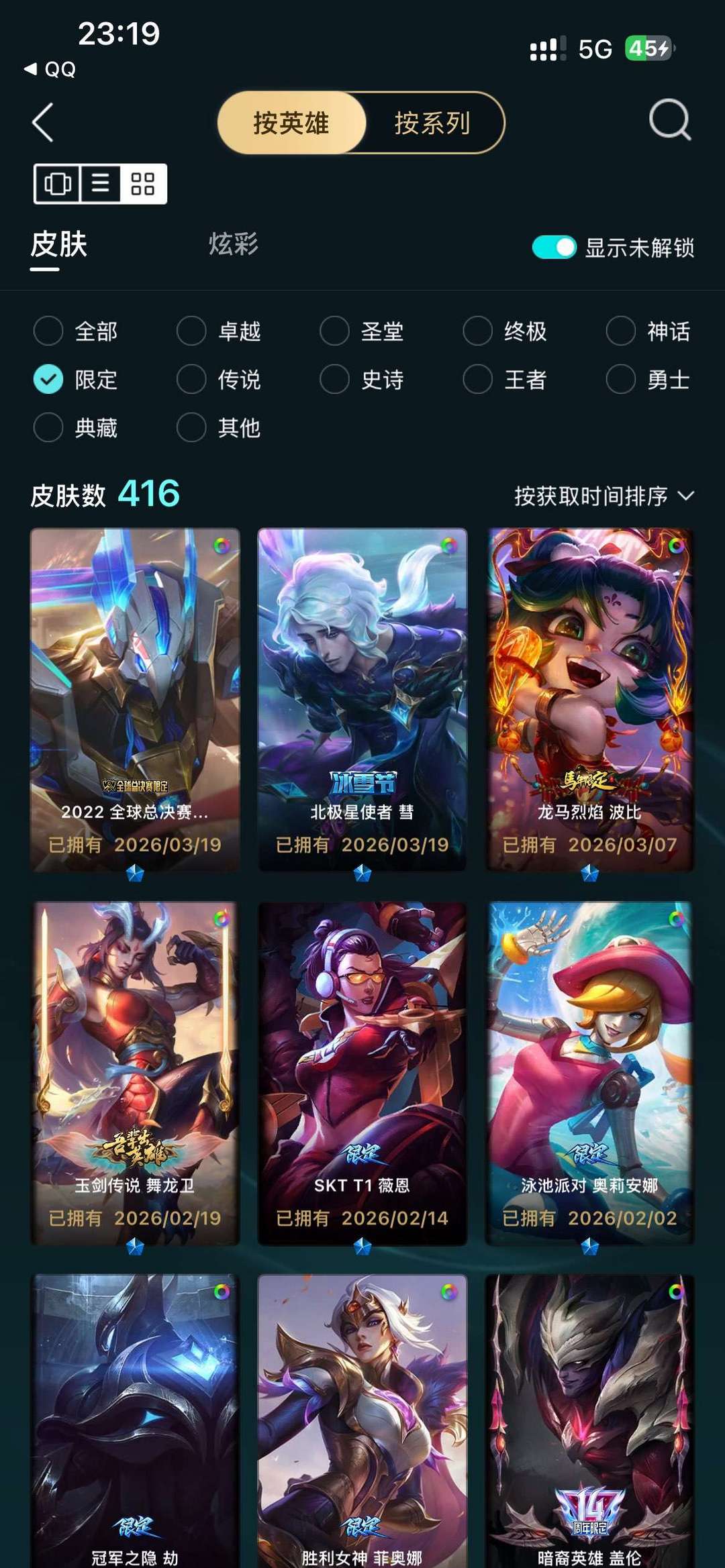 全英雄 480热门皮肤 255炫彩 16至臻,可排位 便宜好用