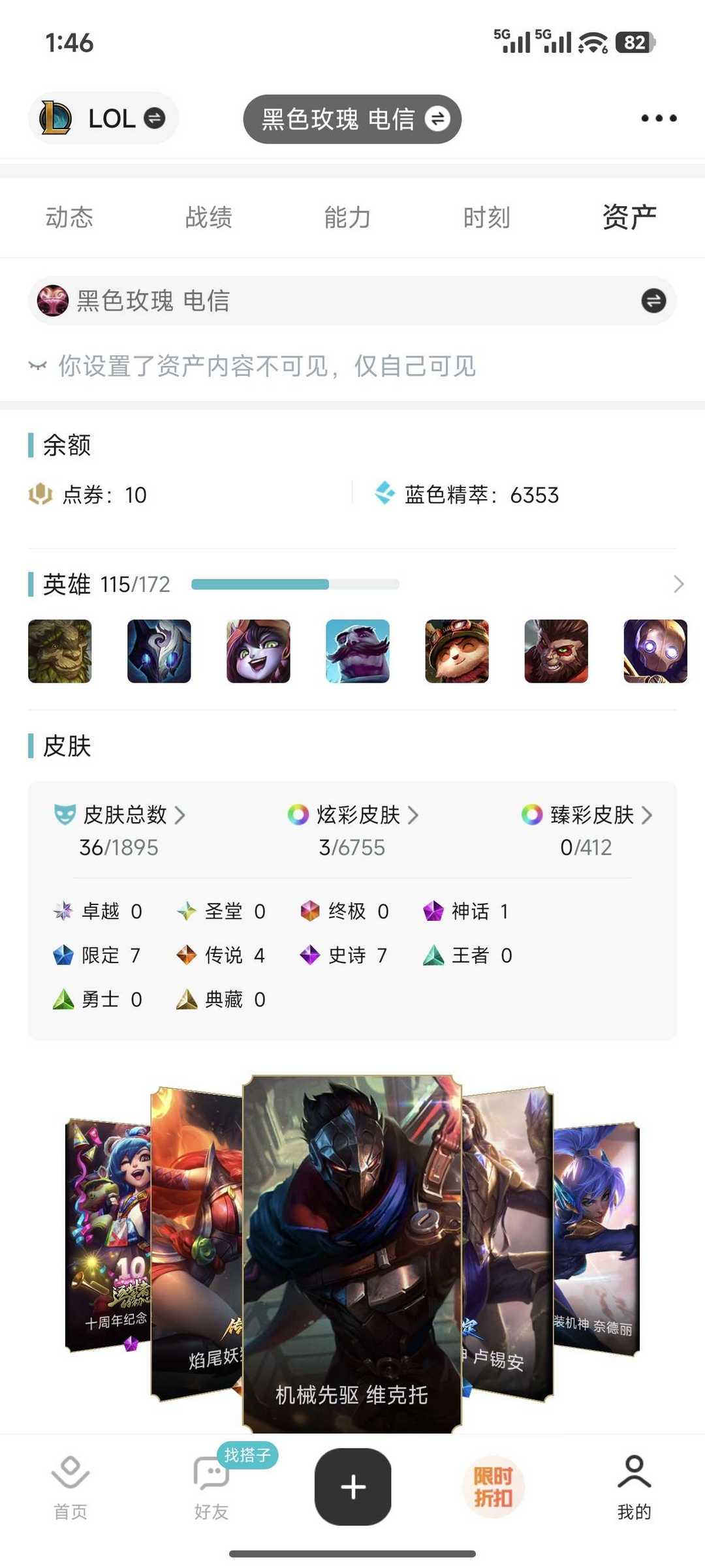 黑色玫瑰,115英雄,36皮肤,可排位,铂金段位