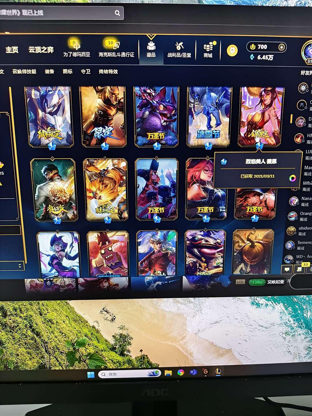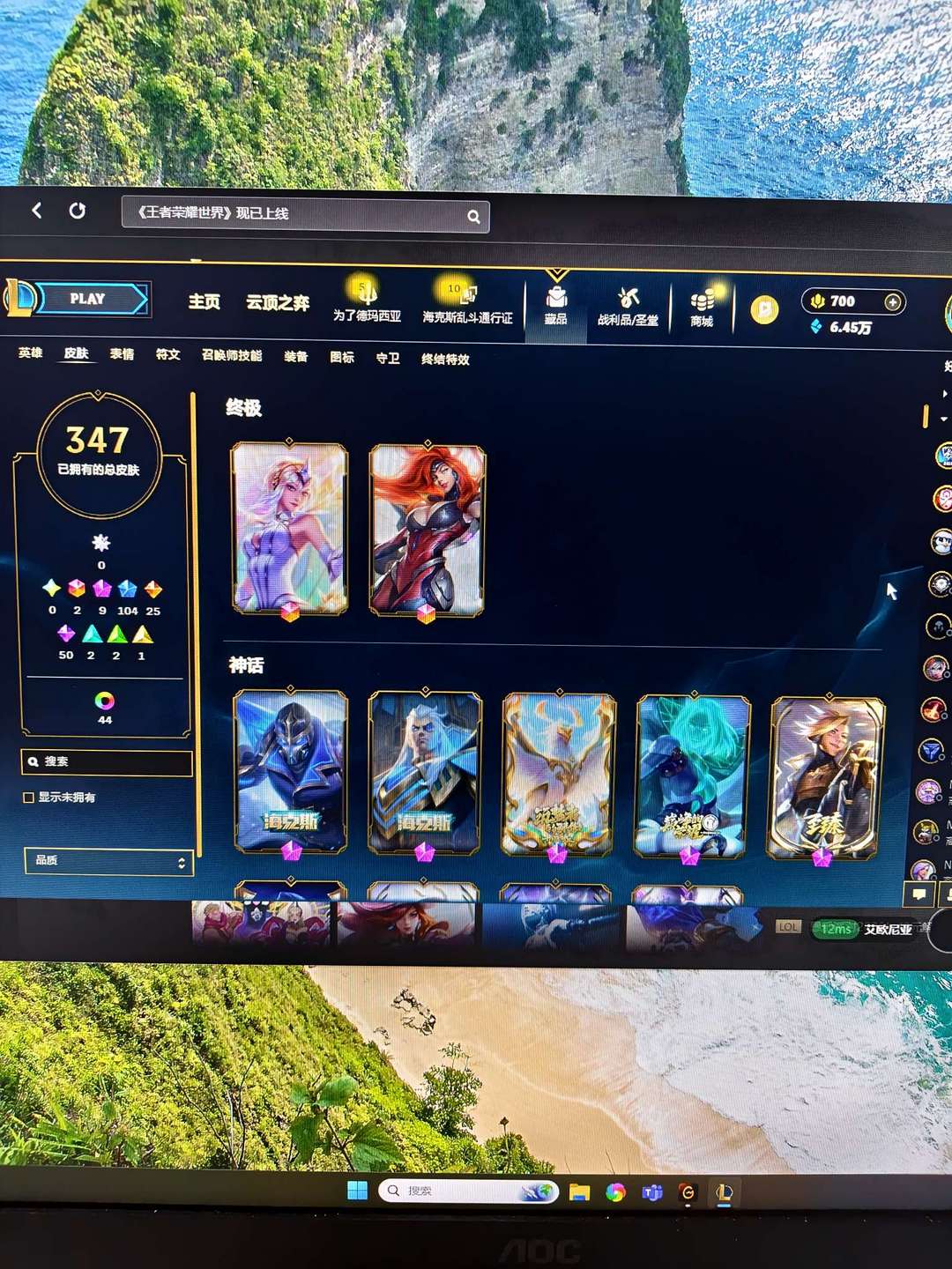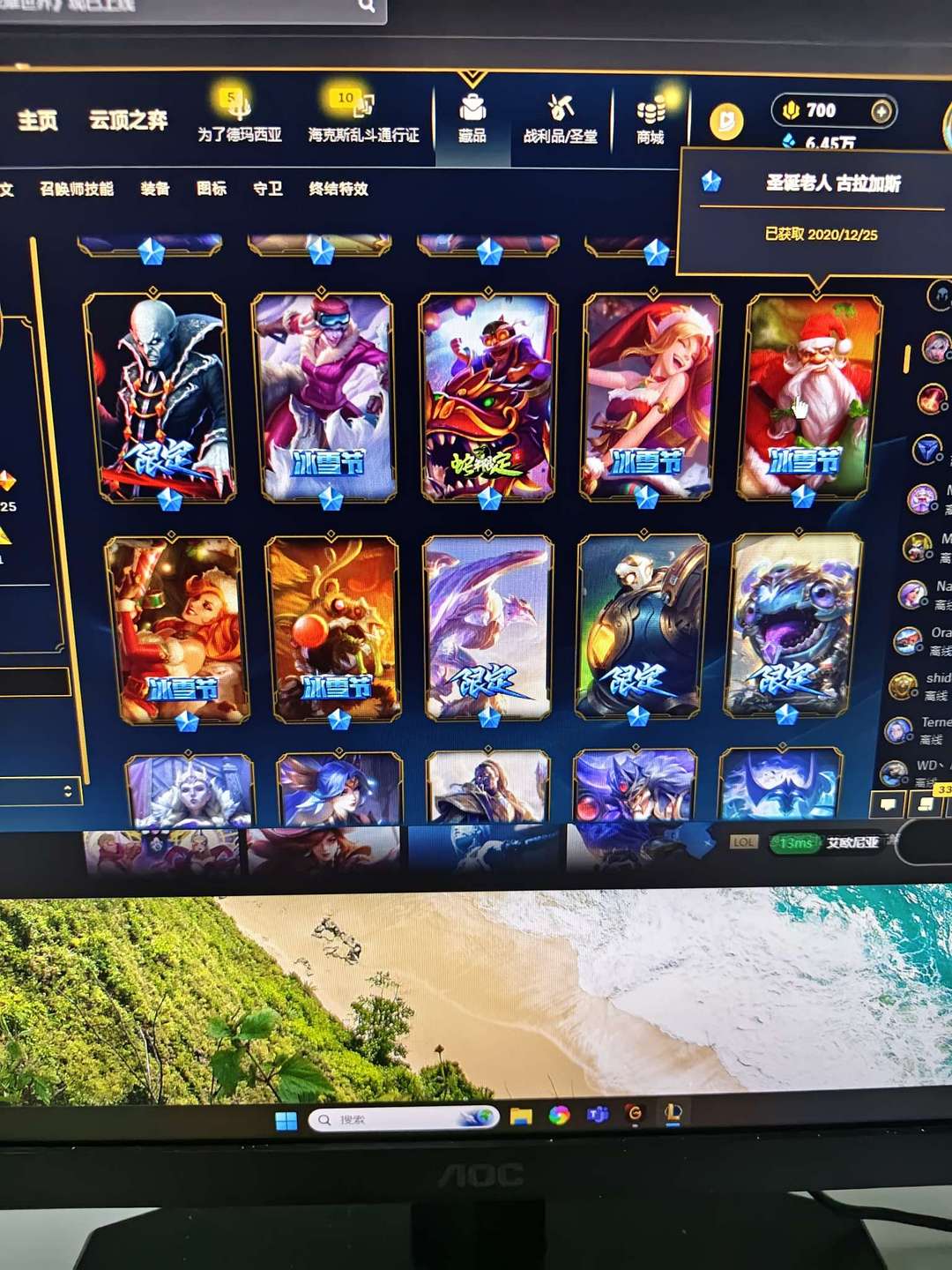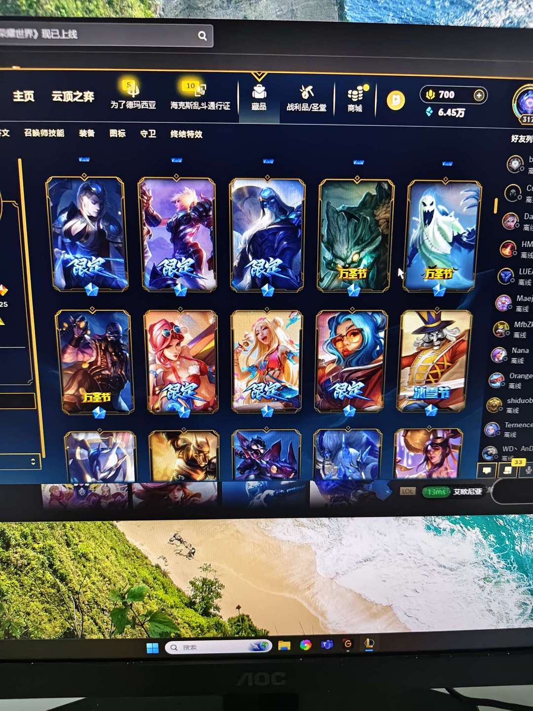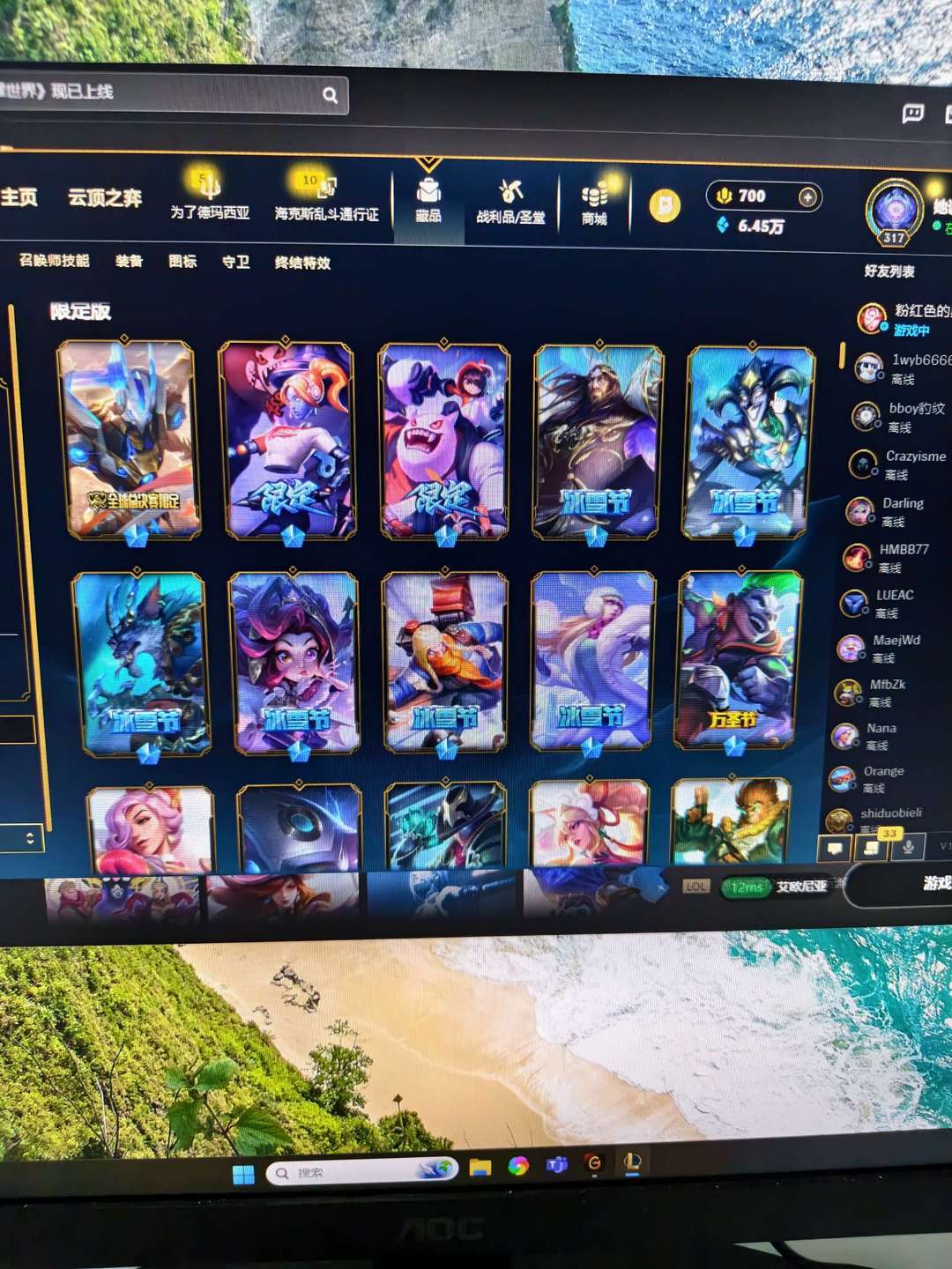 精选皮肤号可排位瞎子龙刀薇恩琴女飞机猴子冠军皮白给免费上线体验一下