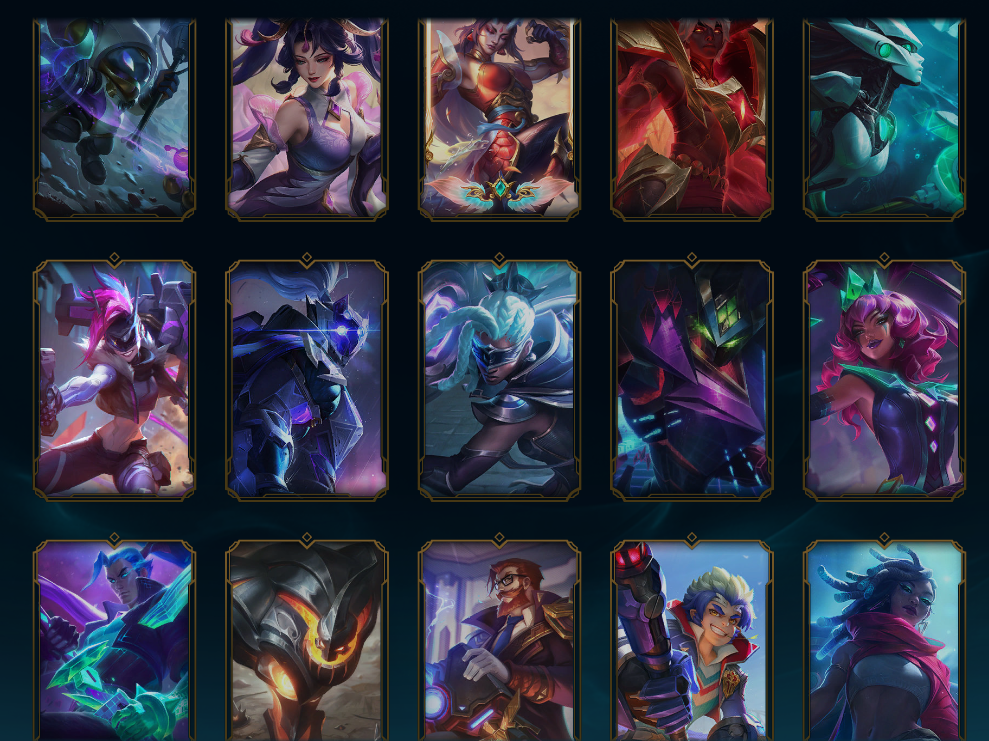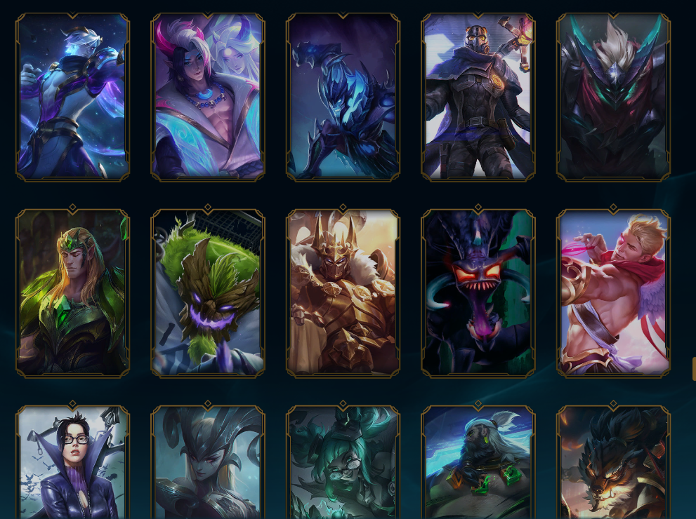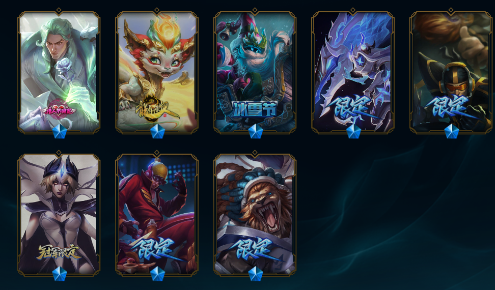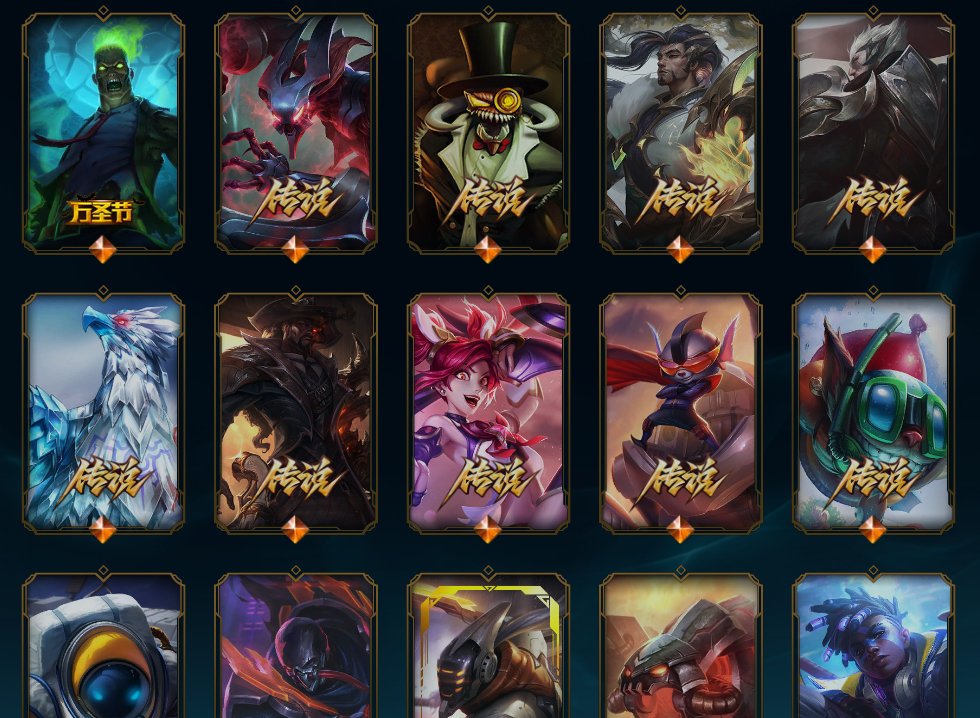 装备描述:鸡里奥,猴年限定孙悟空,水晶玫瑰斯维因,IG乐芙兰,DRX千珏,冰雪季维嘉 布隆,霸天异形螳螂,源计划剑圣 派克 卢锡安,真实伤害艾克,至高之拳李青,老版KDA卡莎,黑夜使者凯隐 皇子,神龙尊者瑟提 狗熊。