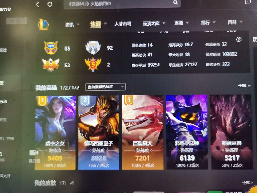 账号全英雄,多精粹,可随意使用,可排位可灵活
