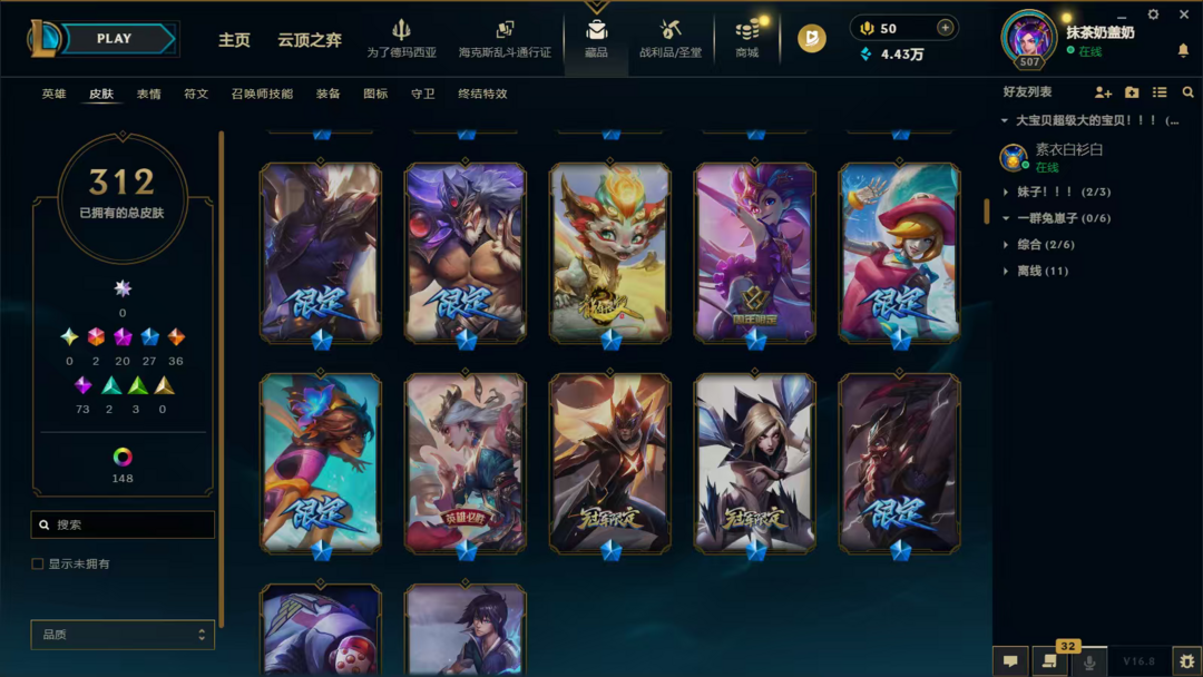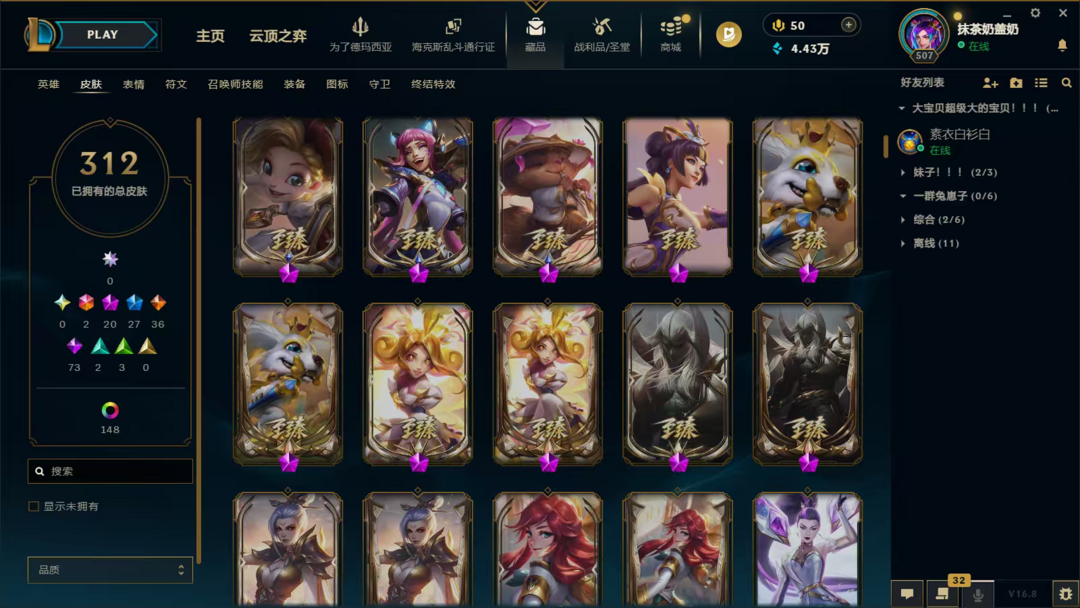 300p/妹妹号/辅助p比较多/至臻/可排位/全英雄/大元素使/噬魂vn武装战姬