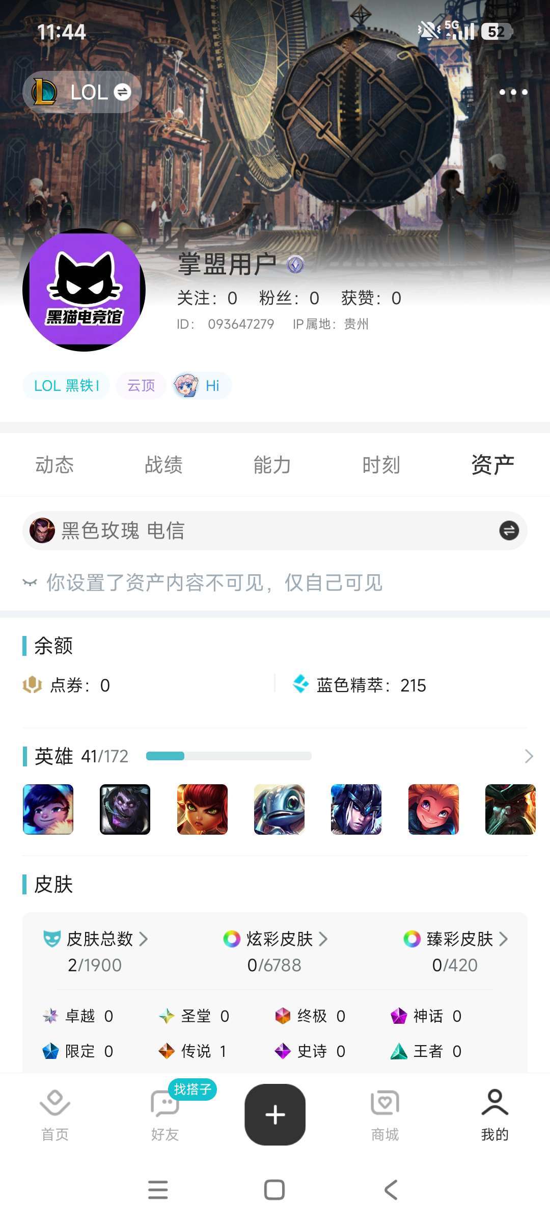 游戏区服:英雄联盟-黑色玫瑰-黑色玫瑰