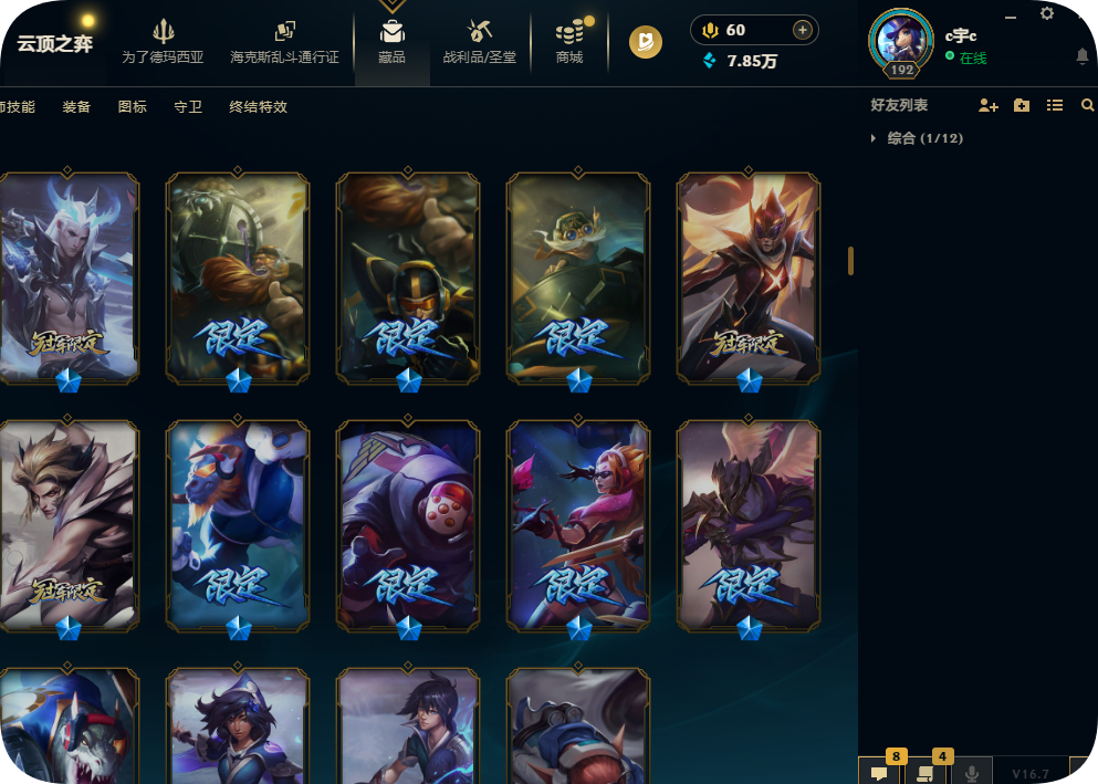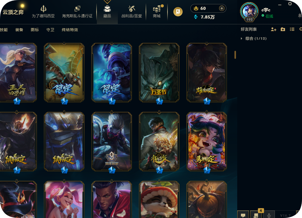 德玛西亚〓1300皮肤龙瞎〓马年限定〓EDG〓SKT套〓SSG套〓暗杀星套〓神龙西部套〓电玩冰雪套〓