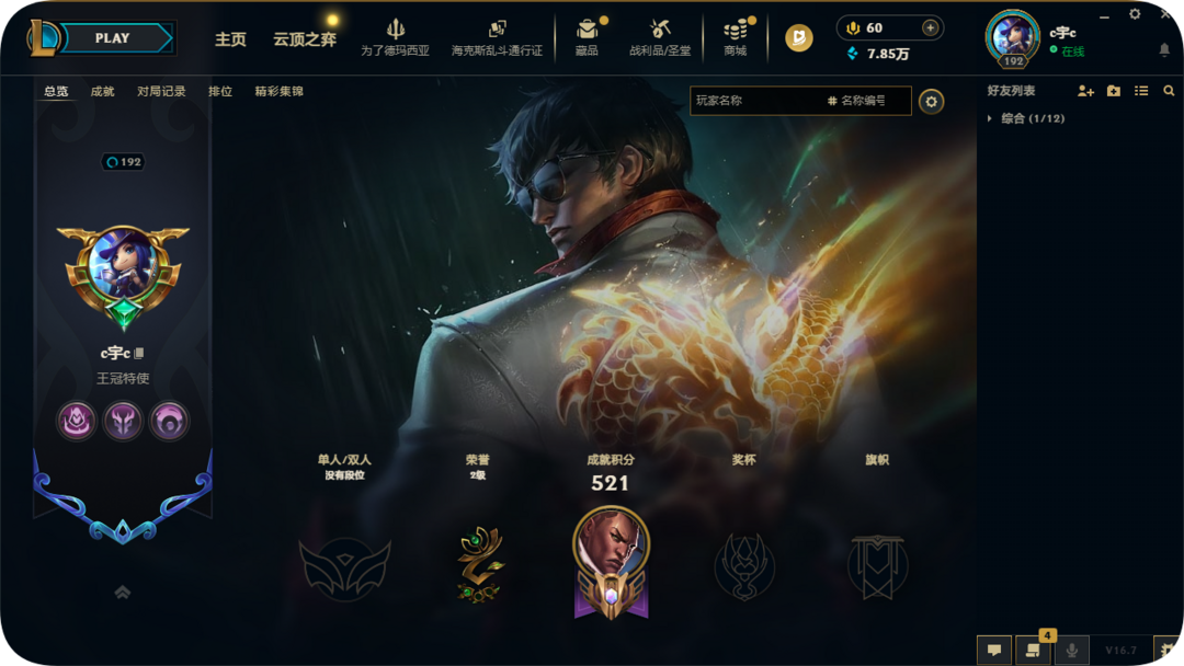 段位:192级 当前赛季无
