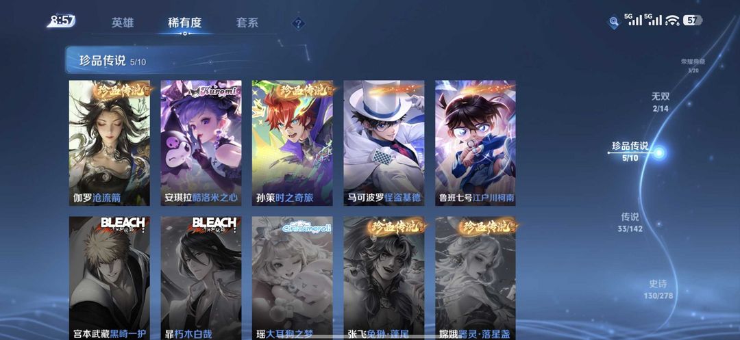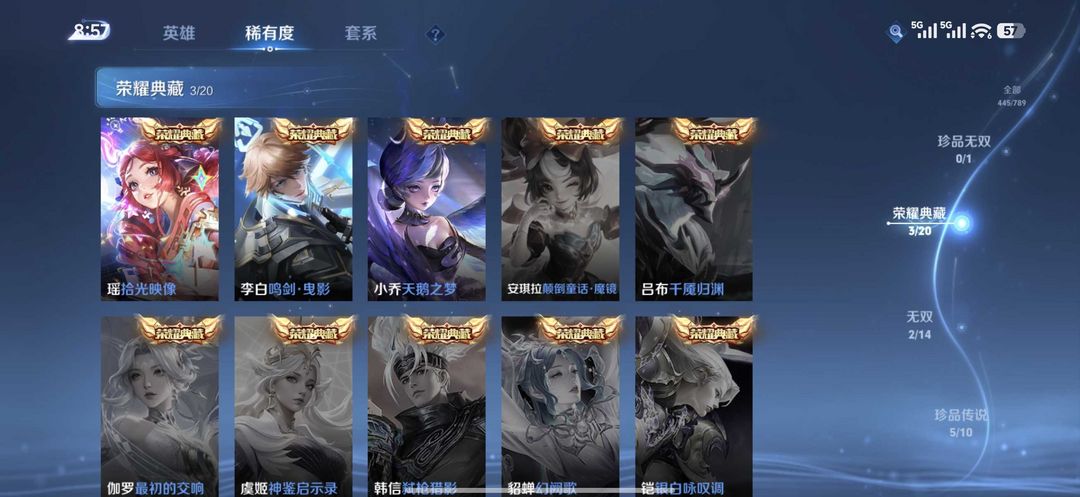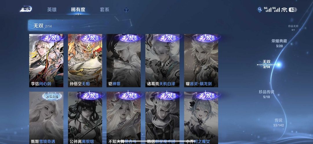 问心剑沧流箭踏浪归马限全套✨四十款传说皮肤五珍品四典藏两无双五星传说