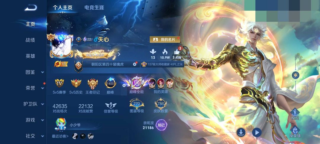 荣耀v10不禁言786皮❤️历史大李白澜凯玄策小国老虎镜打野74段巅峰全能百强❤17星元4小兵