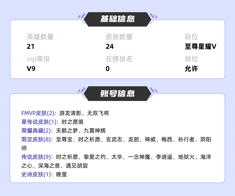 400多皮肤,2荣耀,155限定,28传说,130史诗,老皮肤V9❤️号