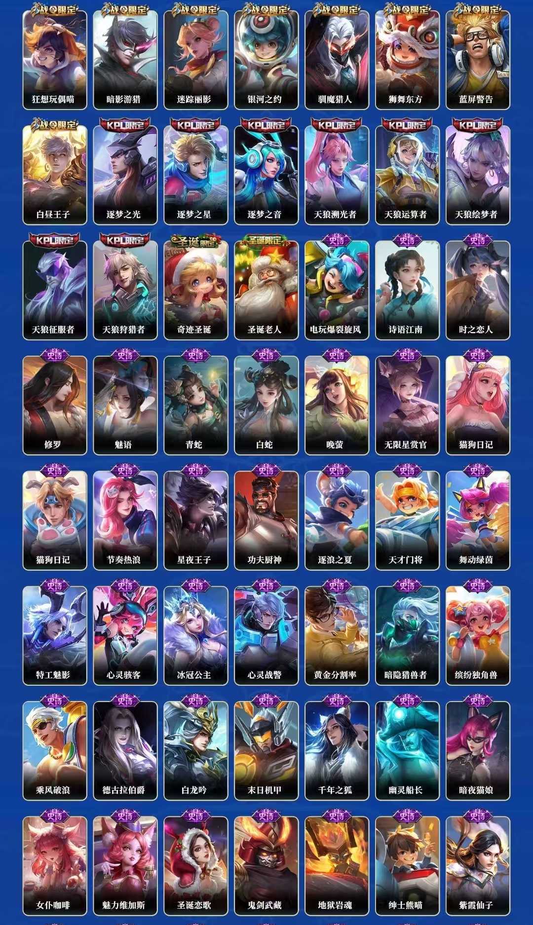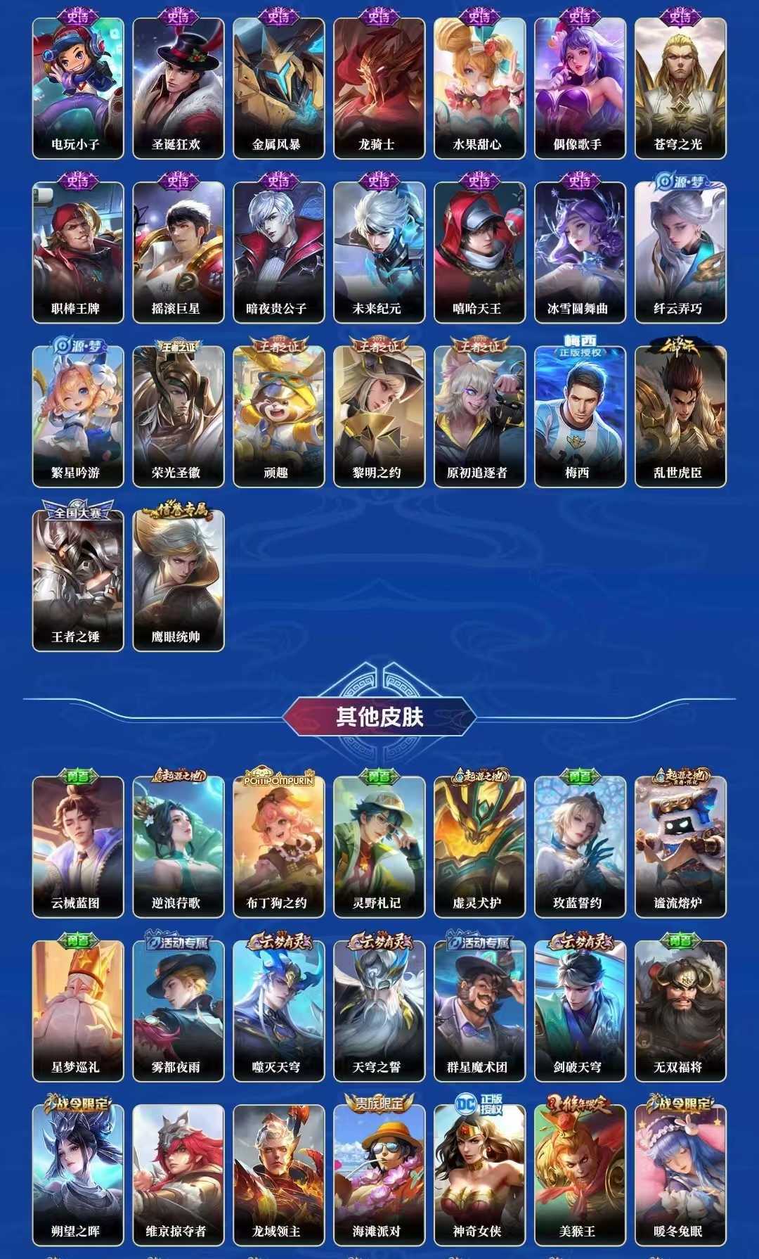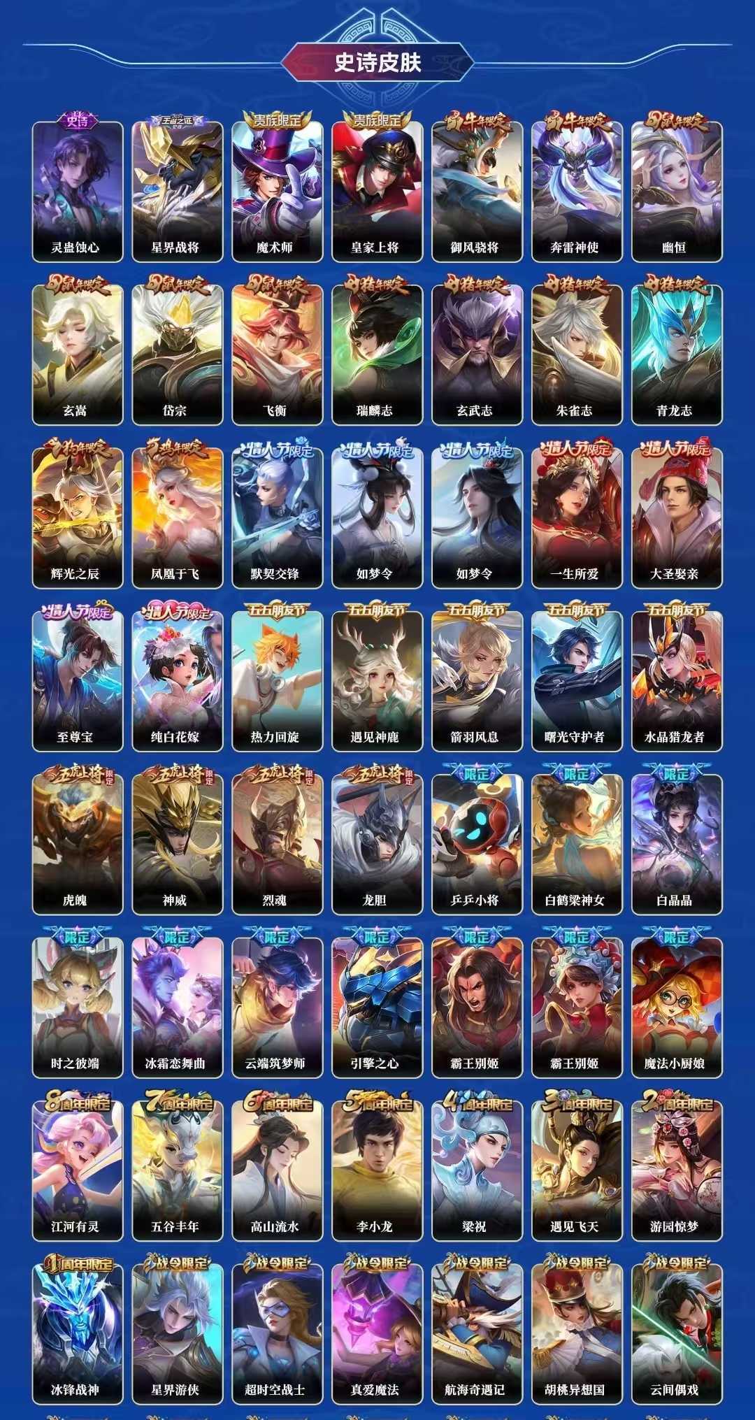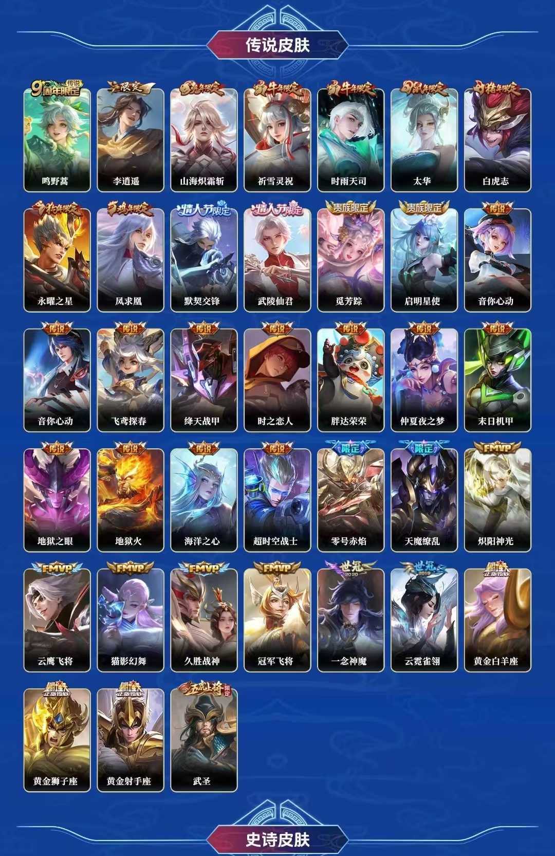 【C8】贵族V10~420皮9典藏38传说炽霜斩,祈雪灵祝,武圣,神威,至尊宝,凤求凰,梅西,白虎志