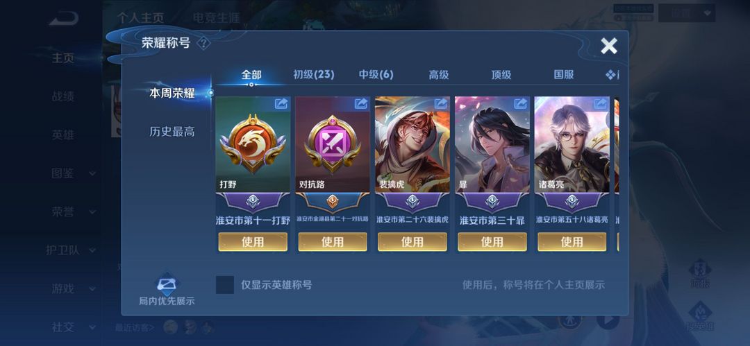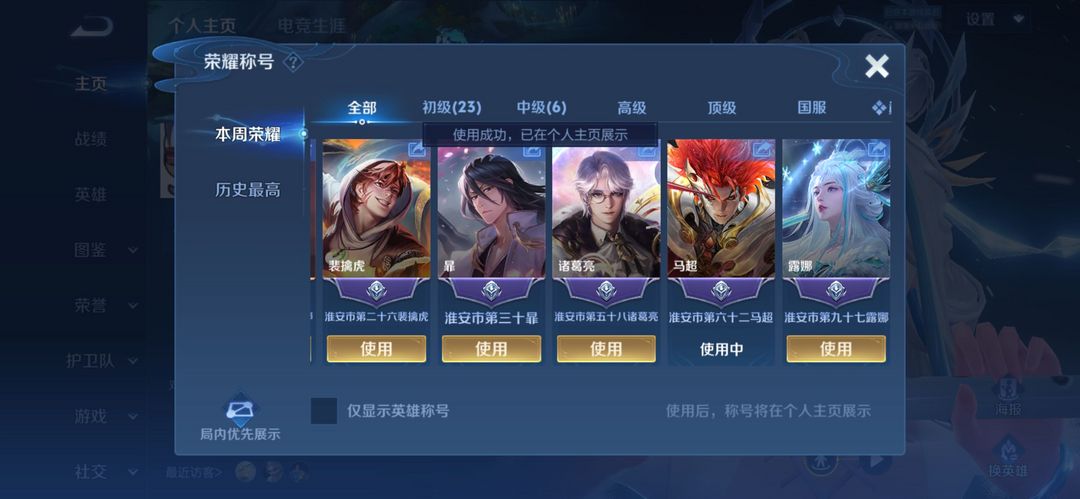 83段打野在榜多热门市标⚡️国服暃孙策云缨省一马超⭐️朽木白哉星域神启多热门限定⭐️可排位