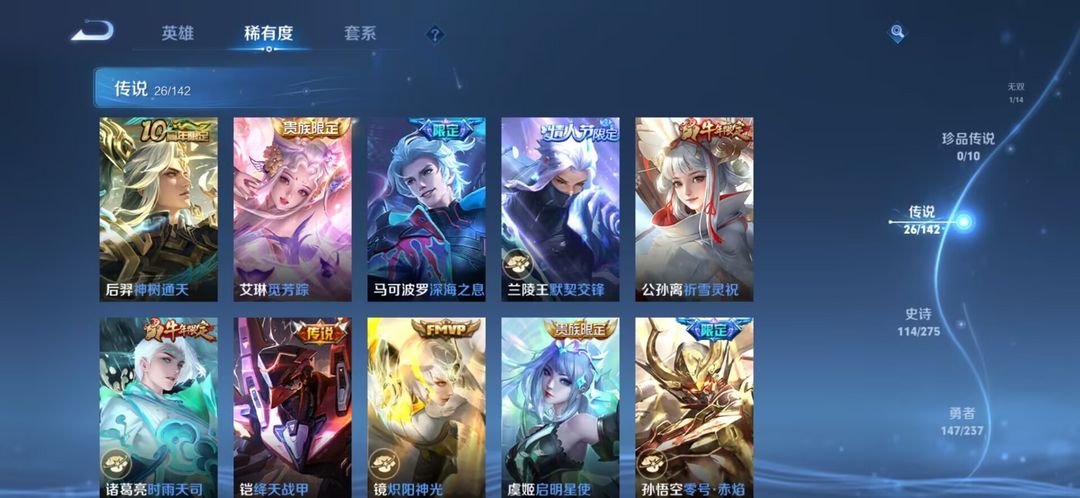上分快乐•V10•387皮 9典藏1无双5星元26传说113 史诗•天鹅之梦•星空梦想•全息碎影
