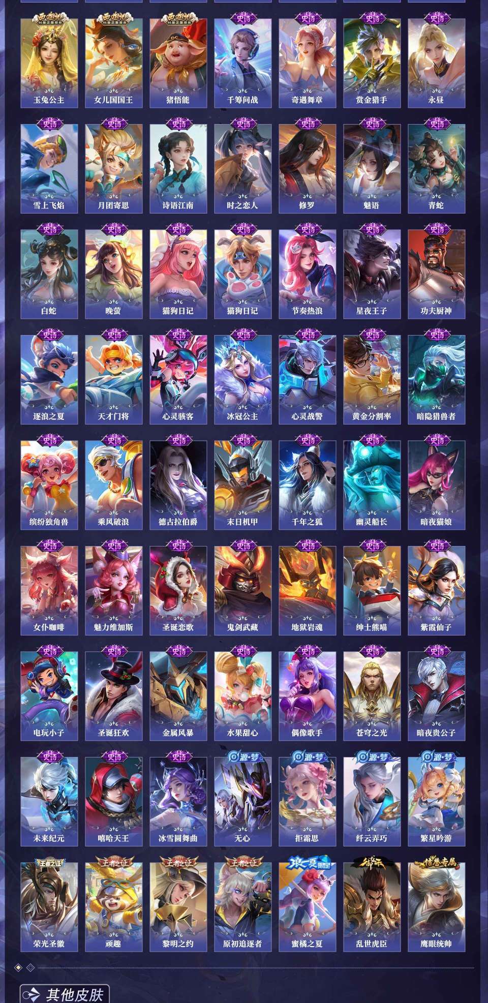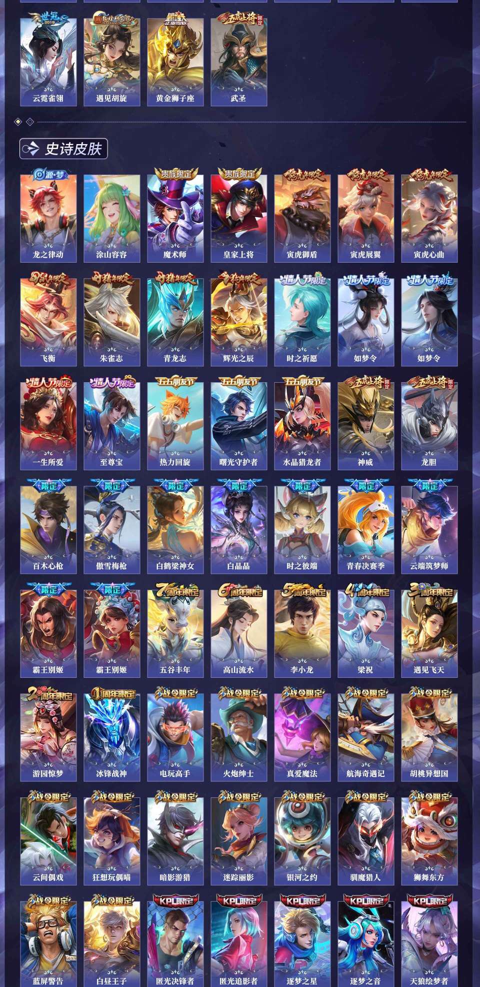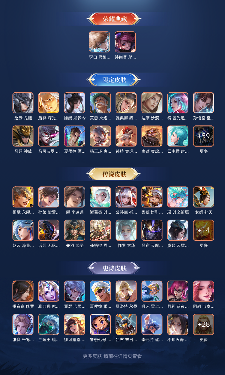 贵族荣耀10 荣耀典藏3 传说皮肤39 史诗皮肤119 皮肤数量355 35万皮肤价值