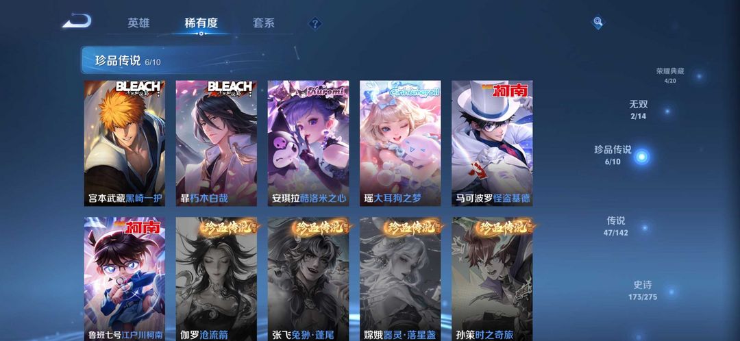 v10⚡怪盗基德⚡4典藏⚡534皮肤⚡47传说⚡包天便宜⚡无双2