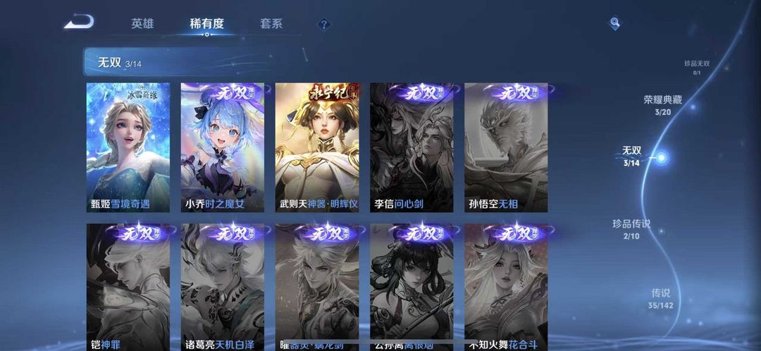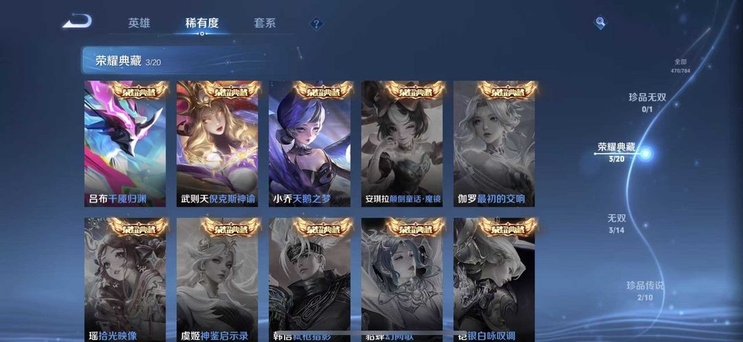 装备描述:V9✨470皮肤✨3典藏✨3无双✨35传说✨干魇归渊✨时之魔女✨千山共赴✨蛇年限定✨玄雷天君