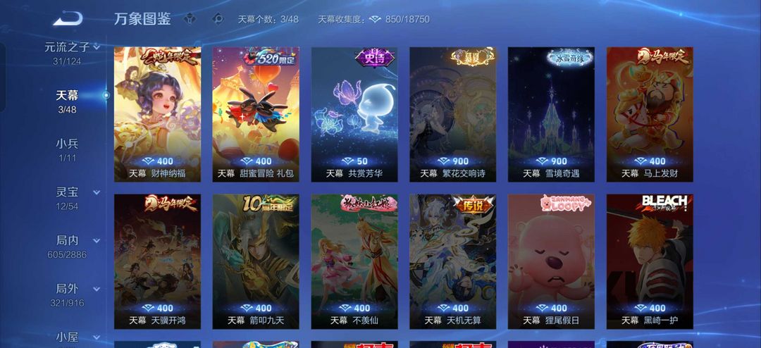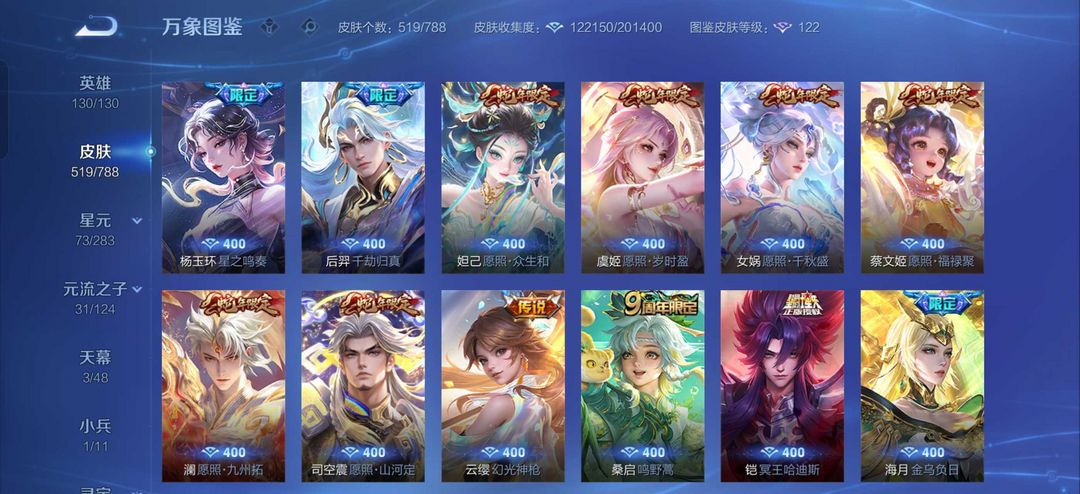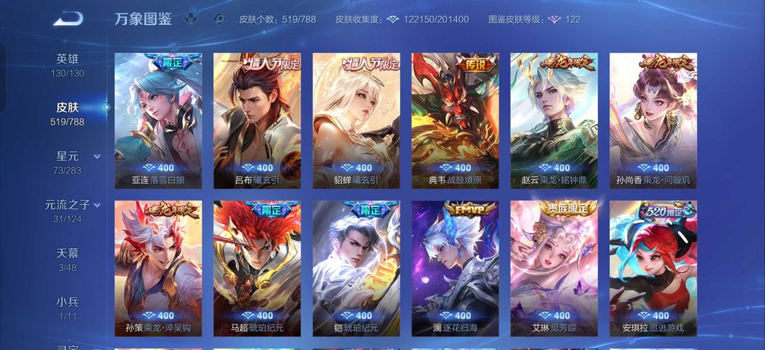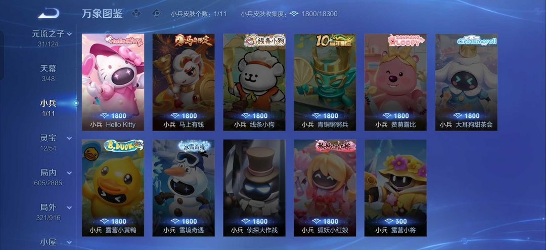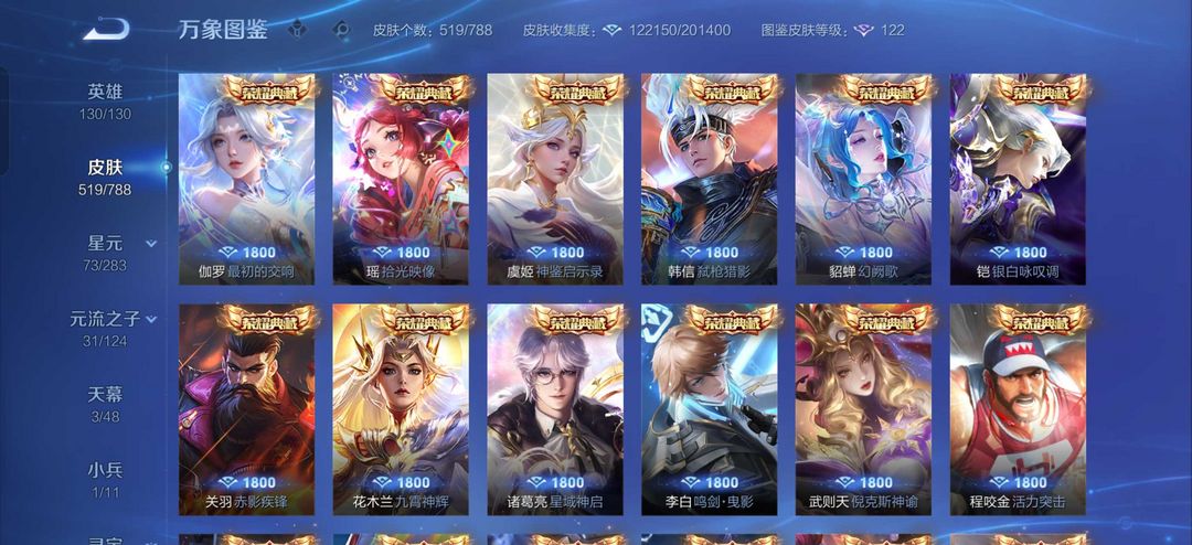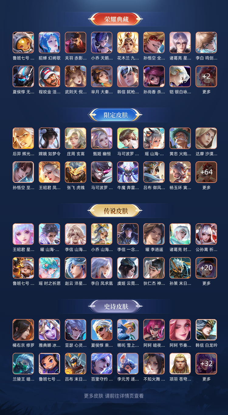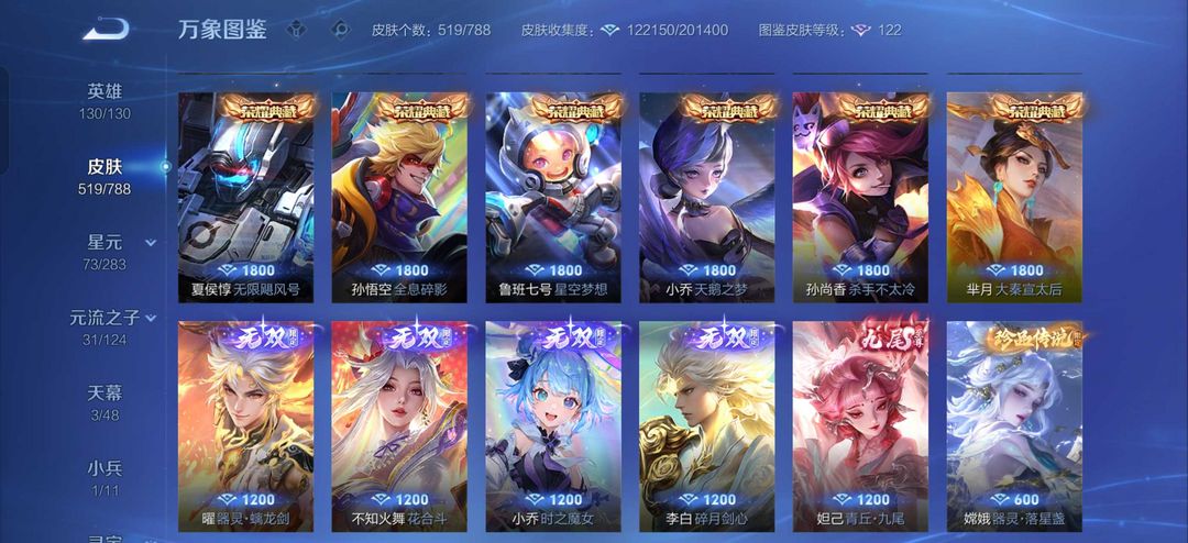 贵族10 519皮18典藏5无双嫦娥珍品传说73传说满蛇年HalloKitty小兵