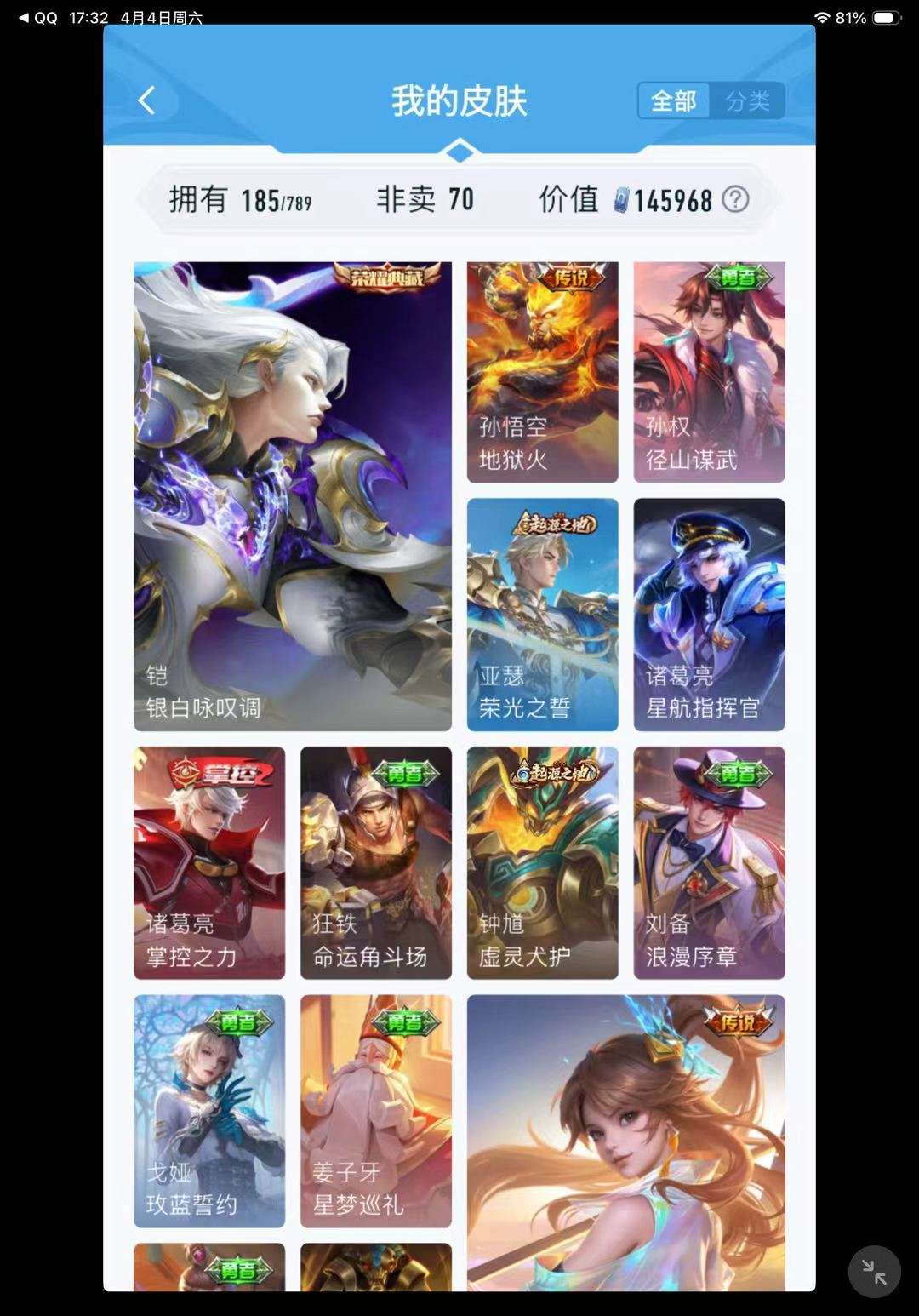 游戏区服:王者荣耀-QQ苹果-QQ账号