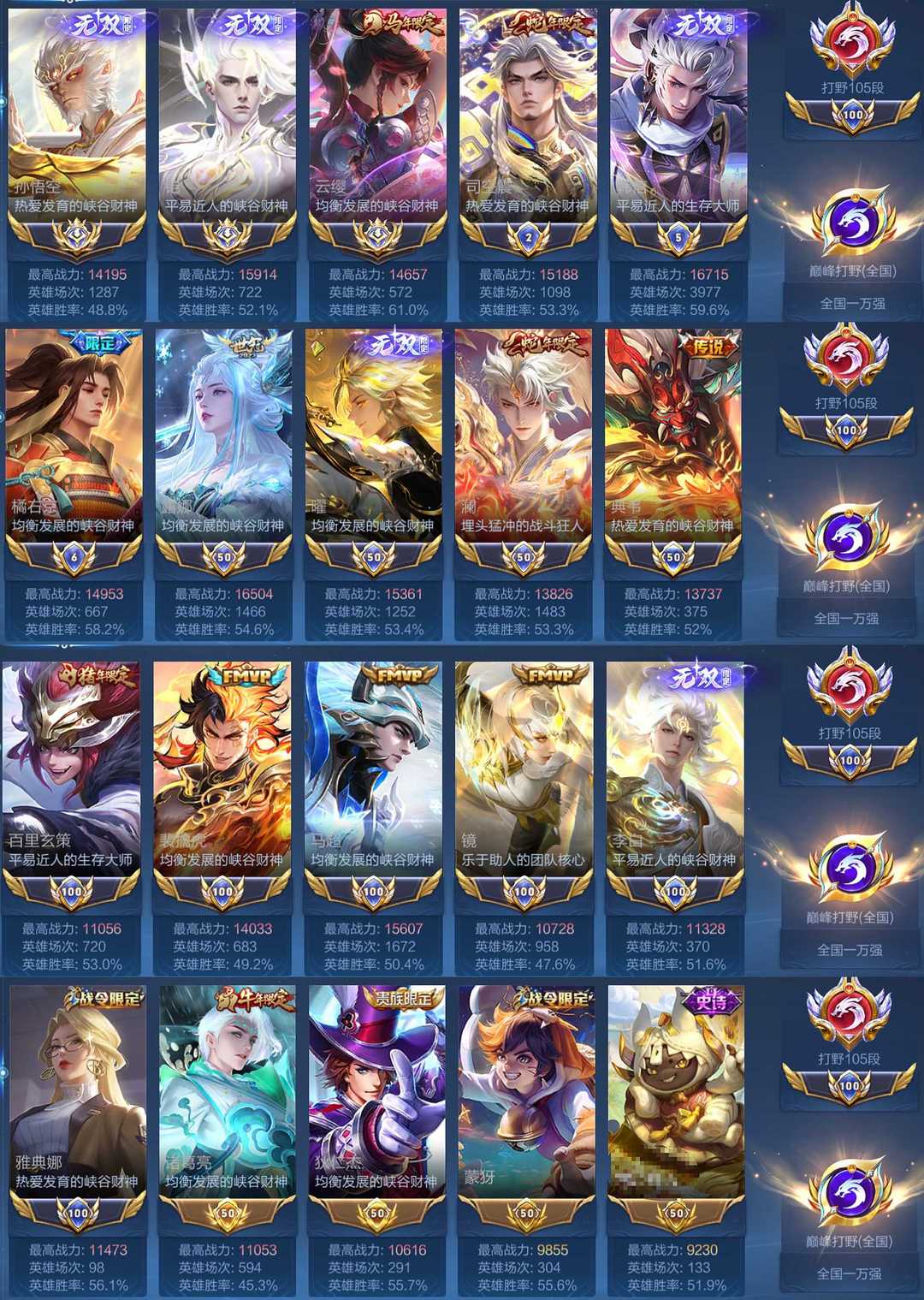 (禁玩巅峰赛)本周孙悟空+典韦省标在榜,孙悟空无双限定,105段国服打野,历史3大国标,12小国标
