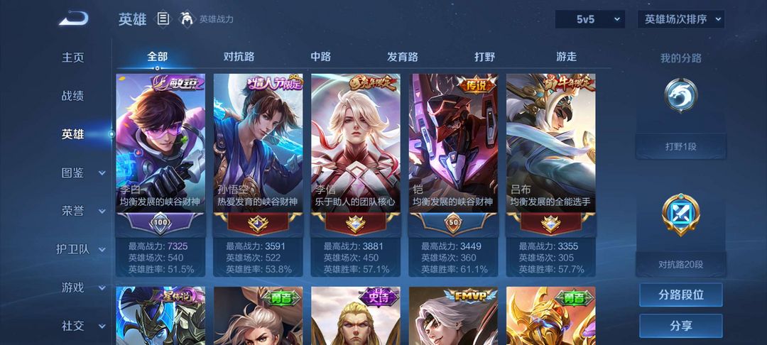 皮肤至尊宝、一念神魔、降天战甲。全铭文。铂金段位。全英雄