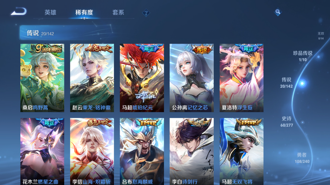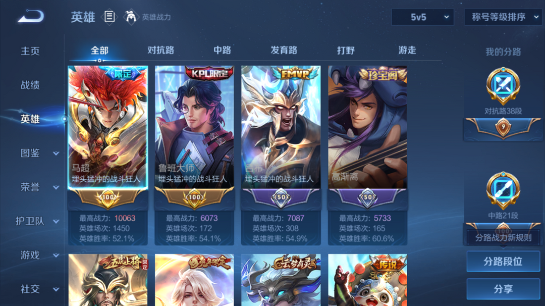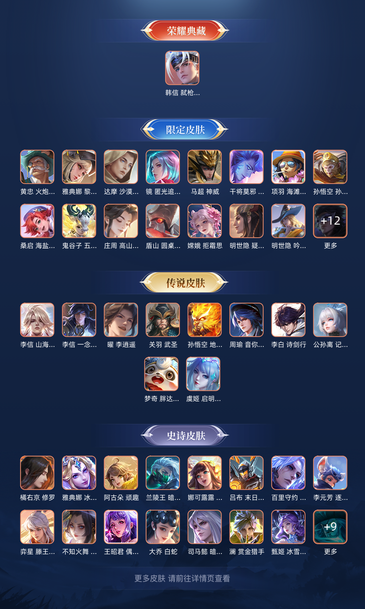 爽玩小号♥万战金标马超♥金标鲁班大师 235皮v8♥韩信典藏♥20传♥神威♥红毛马超♥