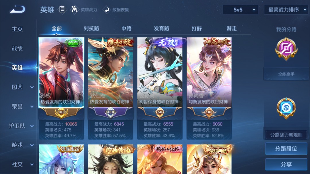 爽玩整天♥澜♥李白♥花木兰全皮♥金标孙权1w♥421皮v9♥2水♥5无♥44传♥红毛马超♥白虎志♥