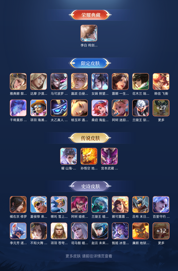 304个皮肤 打野52段 满级铭文 打野玩家 一典藏鸣剑曳影 多款fmvp、限定皮肤等等
