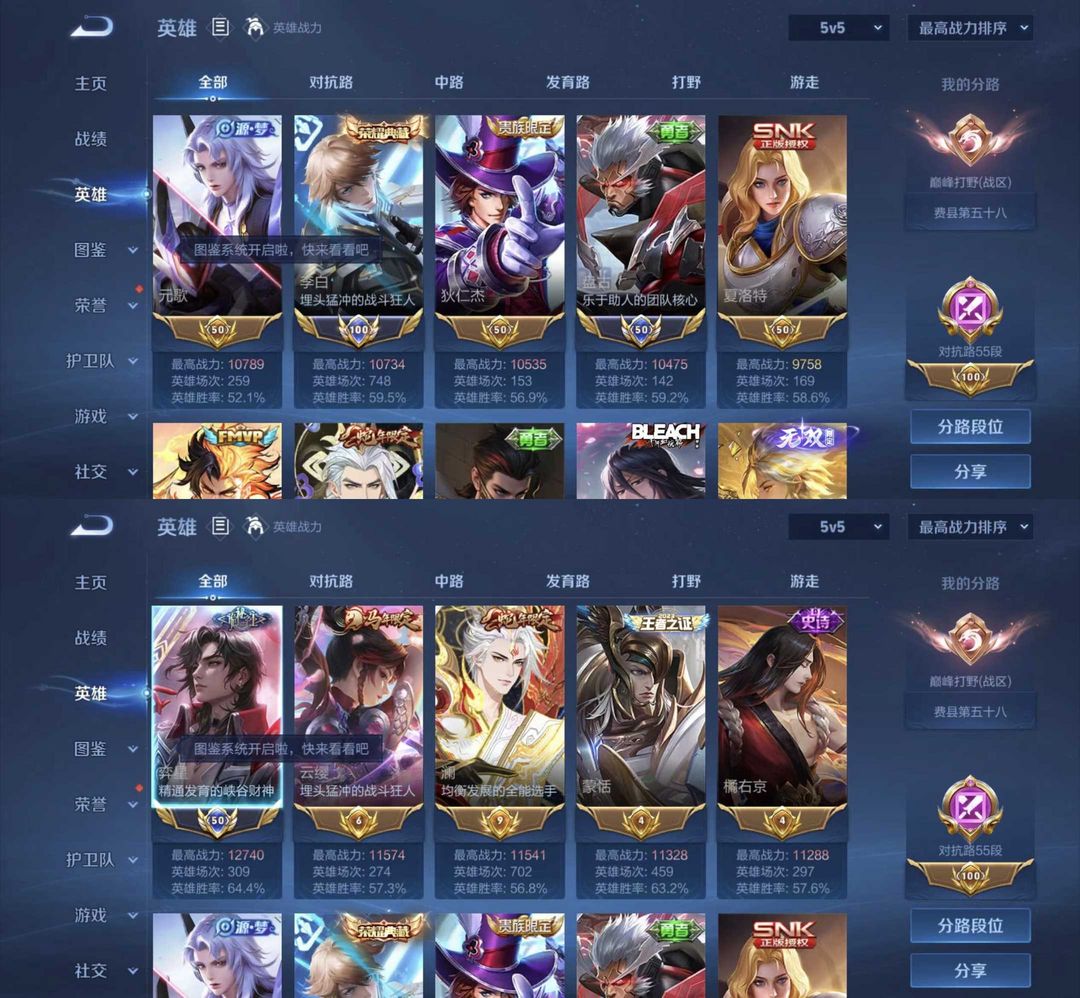 V8巅峰打野66段♉对抗路55段♉百星标识♉1.1万国服李白盘古奕星♉神骥.越千峰♉璃龙剑