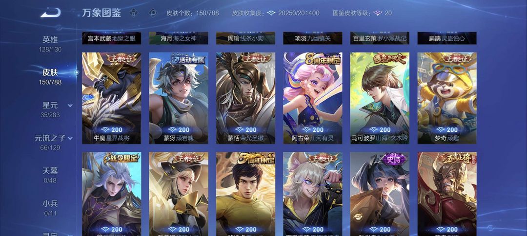 李信兔年限定,地狱之眼,后羿黄金射手座,干将久胜战神,花木兰冠军飞将