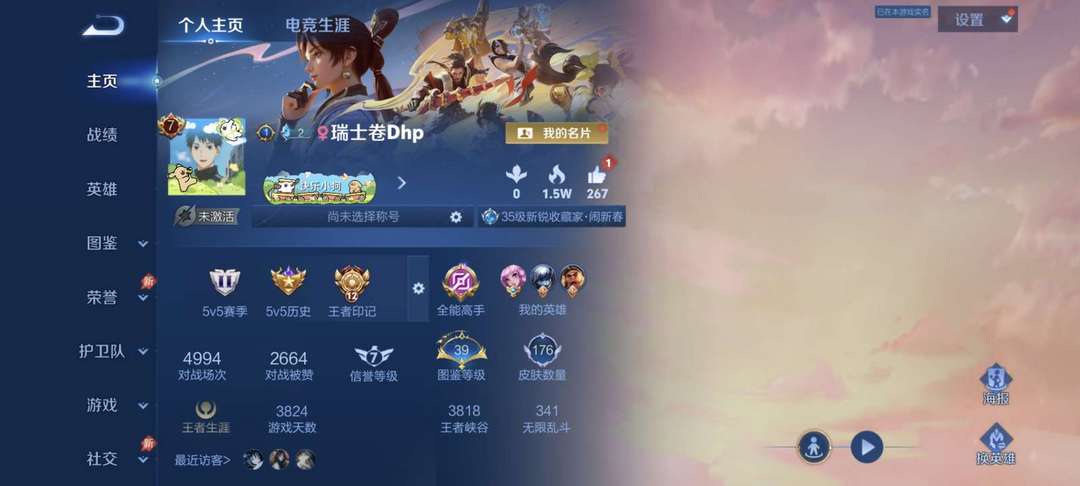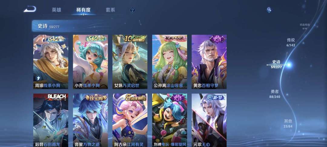 v7,满铭文,皮肤有至尊宝,凤求凰,白虎志,干将fmvp,貂蝉fmvp等等