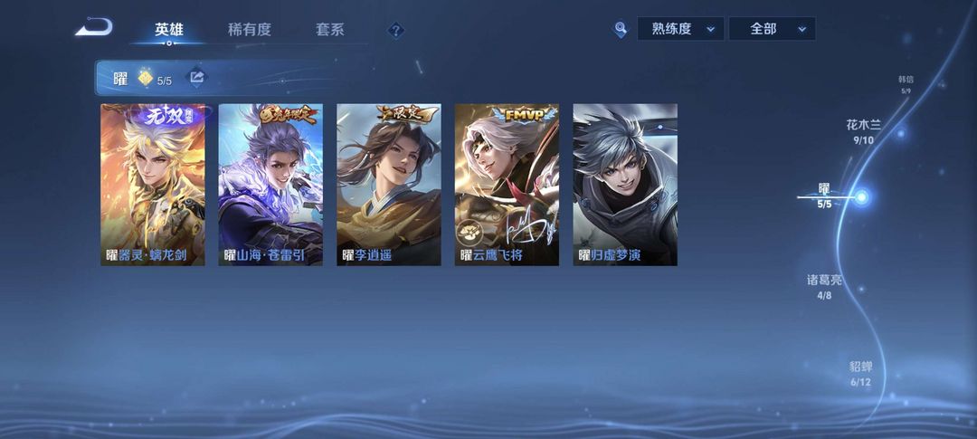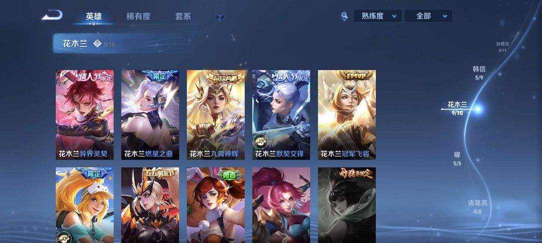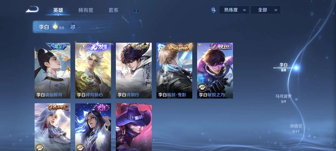 v9/393皮/李白、曜无双全皮/李白、诸葛、貂蝉、伽罗、花木兰典藏/零号赤焰雷霆/嫦娥珍品传说