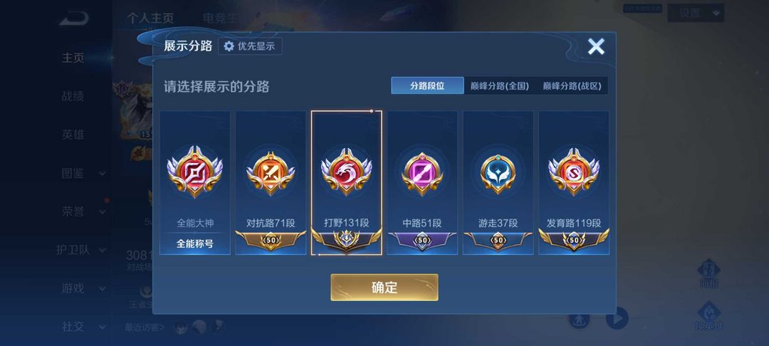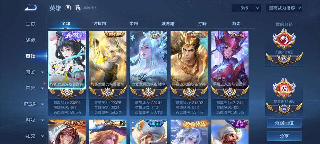 ⭐131段23国服打野⭐119段发育路⭐巅峰万强框⭐v10贵族⭐可排位禁巅峰