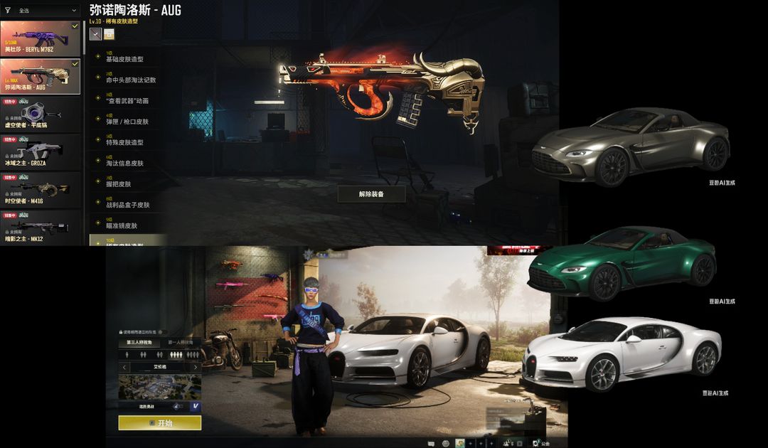 二级密码987654可排⑩级弥诺陶洛斯AUG布加迪跑车+阿斯顿马丁跑车⚛️⑤美杜莎白运动星魂滑雪镜