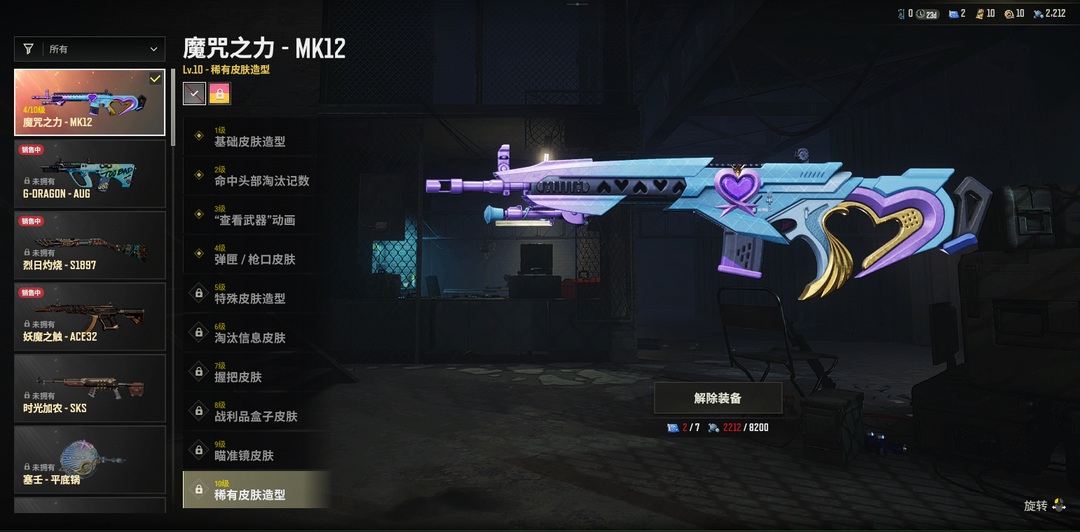 二级密码456789✅④级魔咒之力MK12✅毒液M762✅午餐肉AKM✅拼图mini✅十字军SKS✅