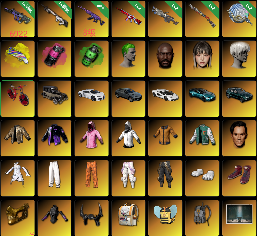 布加迪满马丁满兰博⑩级显卡AUG✨⑩级MK12✨7级美杜莎大菠萝烟雾弹平底锅✨小丑男黑鬼女团尼尔头多