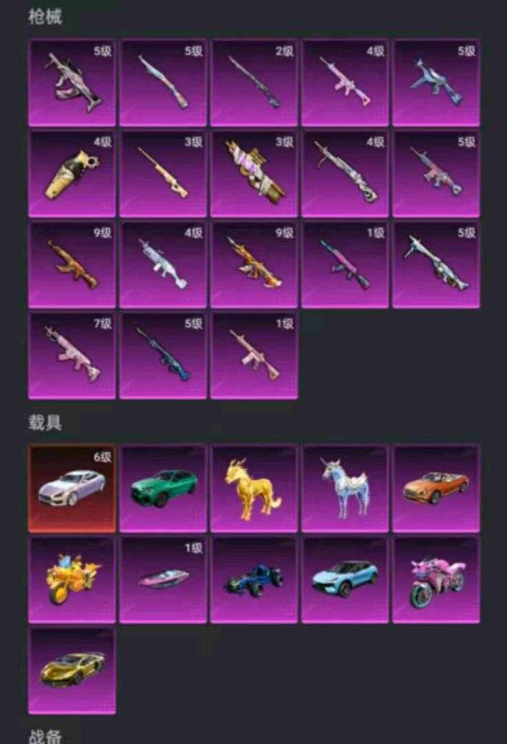 非速玩—4级红图卡+紫螳螂小丑101都市赤歇金鞋—11车满级玛莎金麒麟4把9级枪两把9级—粉熊包