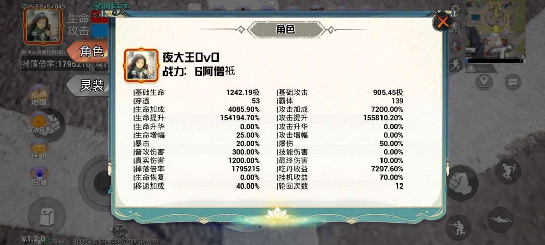 吃丹修仙,6阿僧祇,179多w倍率,12轮回,有神话灵光有称号
