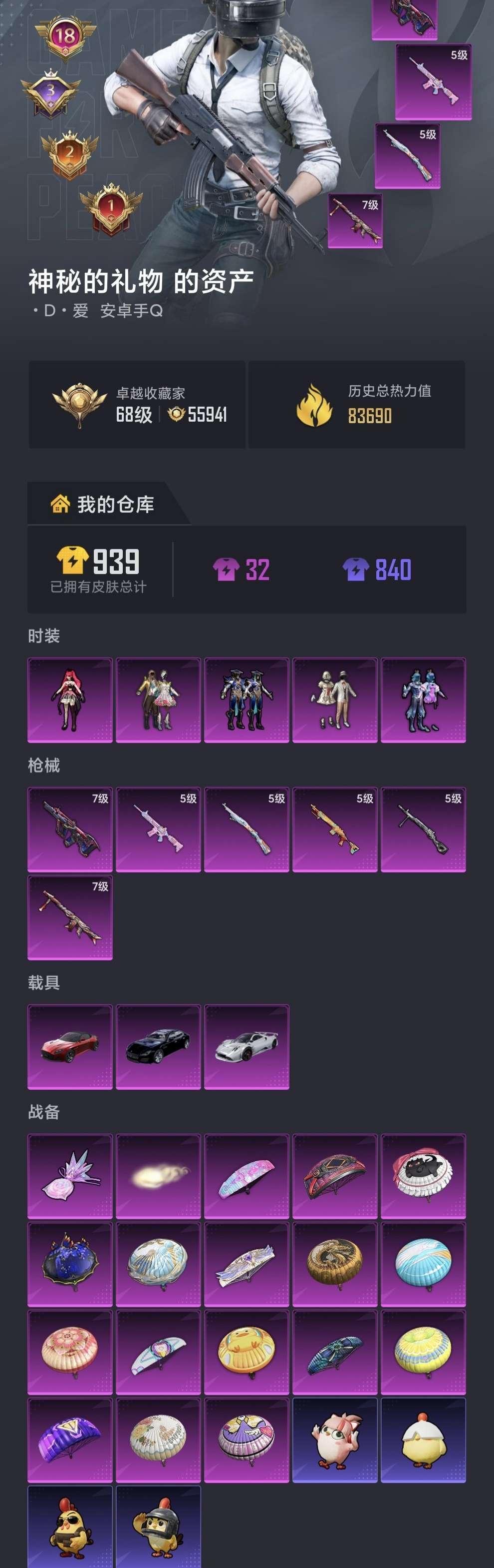 历史高段位5粉装/6特效枪/3载具/2粉飞行器//狩猎者/ 巡查衣/Aug升级枪地铁专用/等其他这些